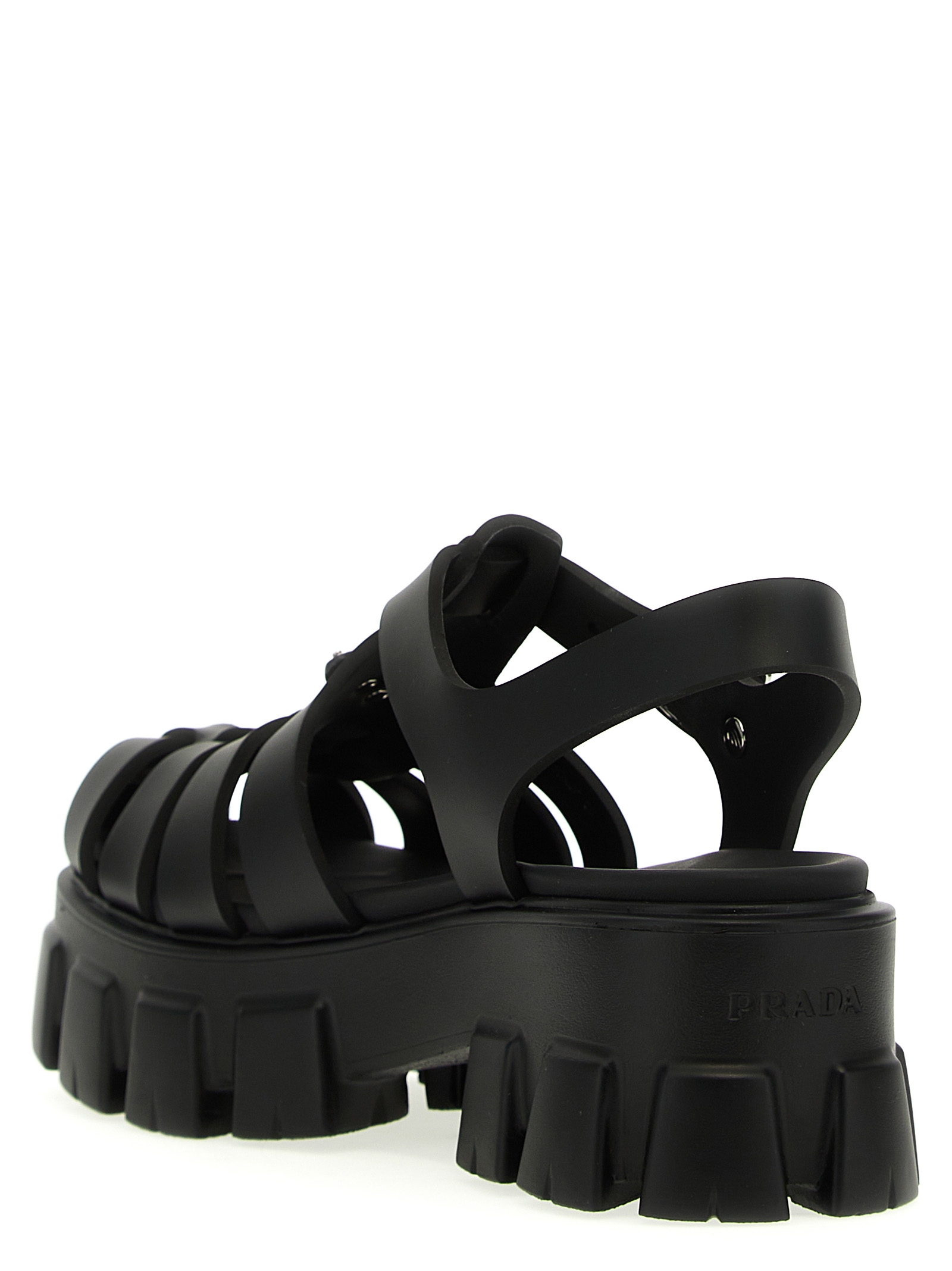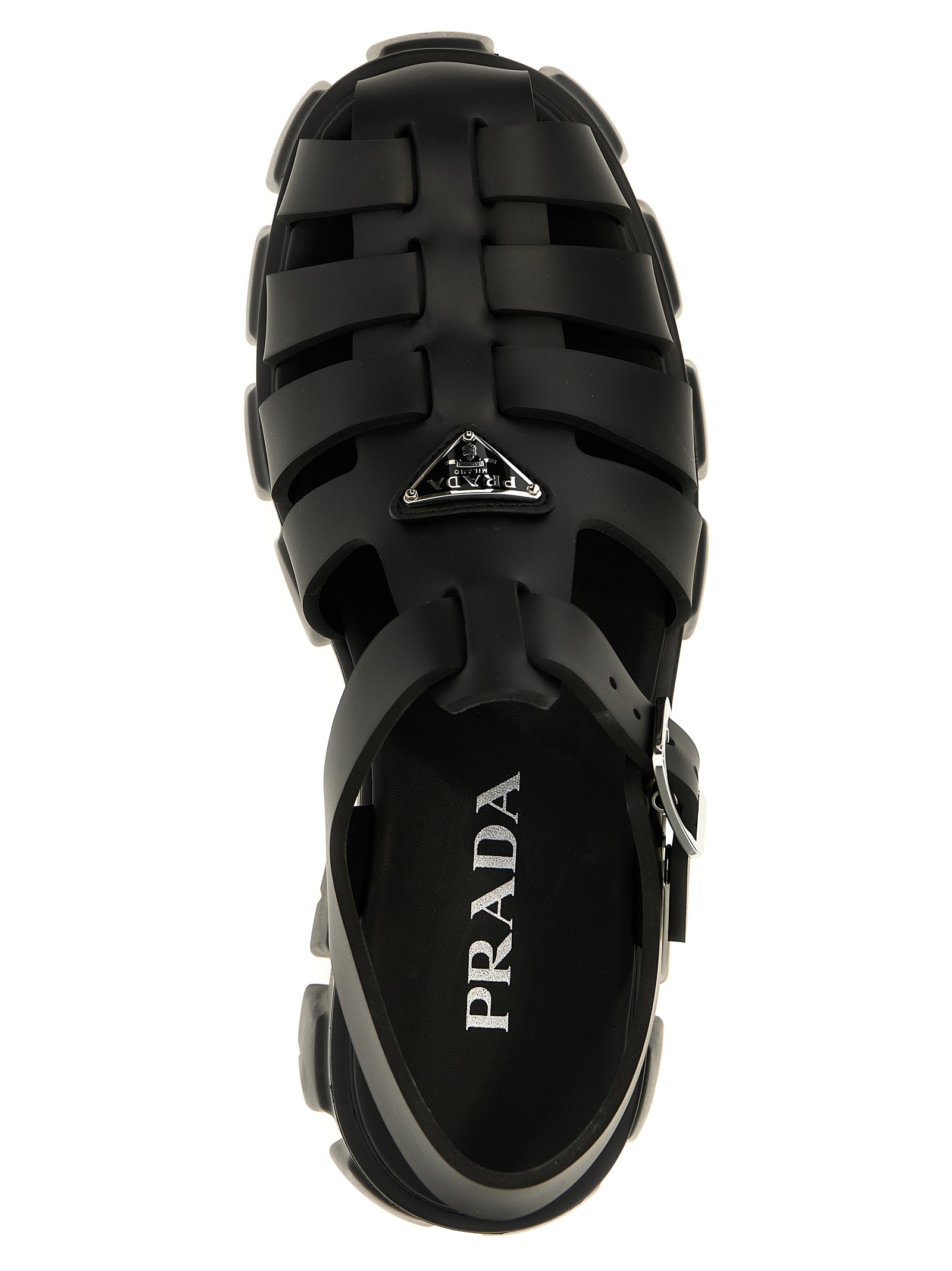 Резиновые сандалии «Cage monolith» с тонкой подошвой и треугольным логотипом.Характеристики товара