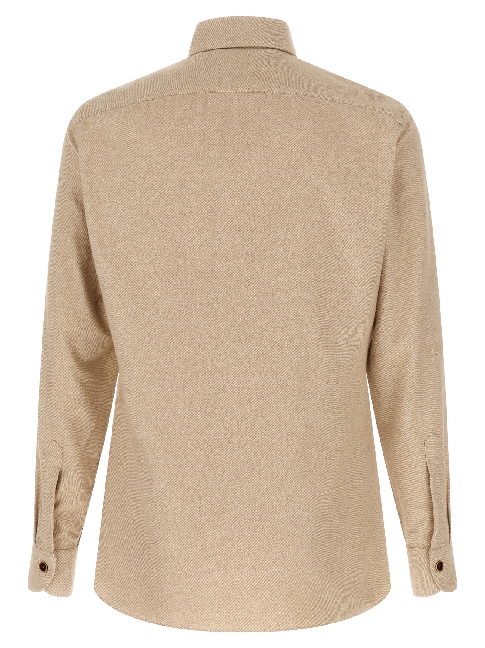 Cotton flannel shirt, small pockets, front button closure, long sleeve with cuff.ed sleeves.