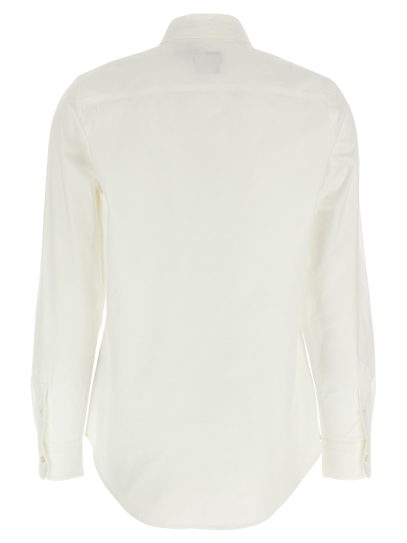 Stretch cotton button-down shirt with front logo embroidery, button closure, long cuffed sleeves.
