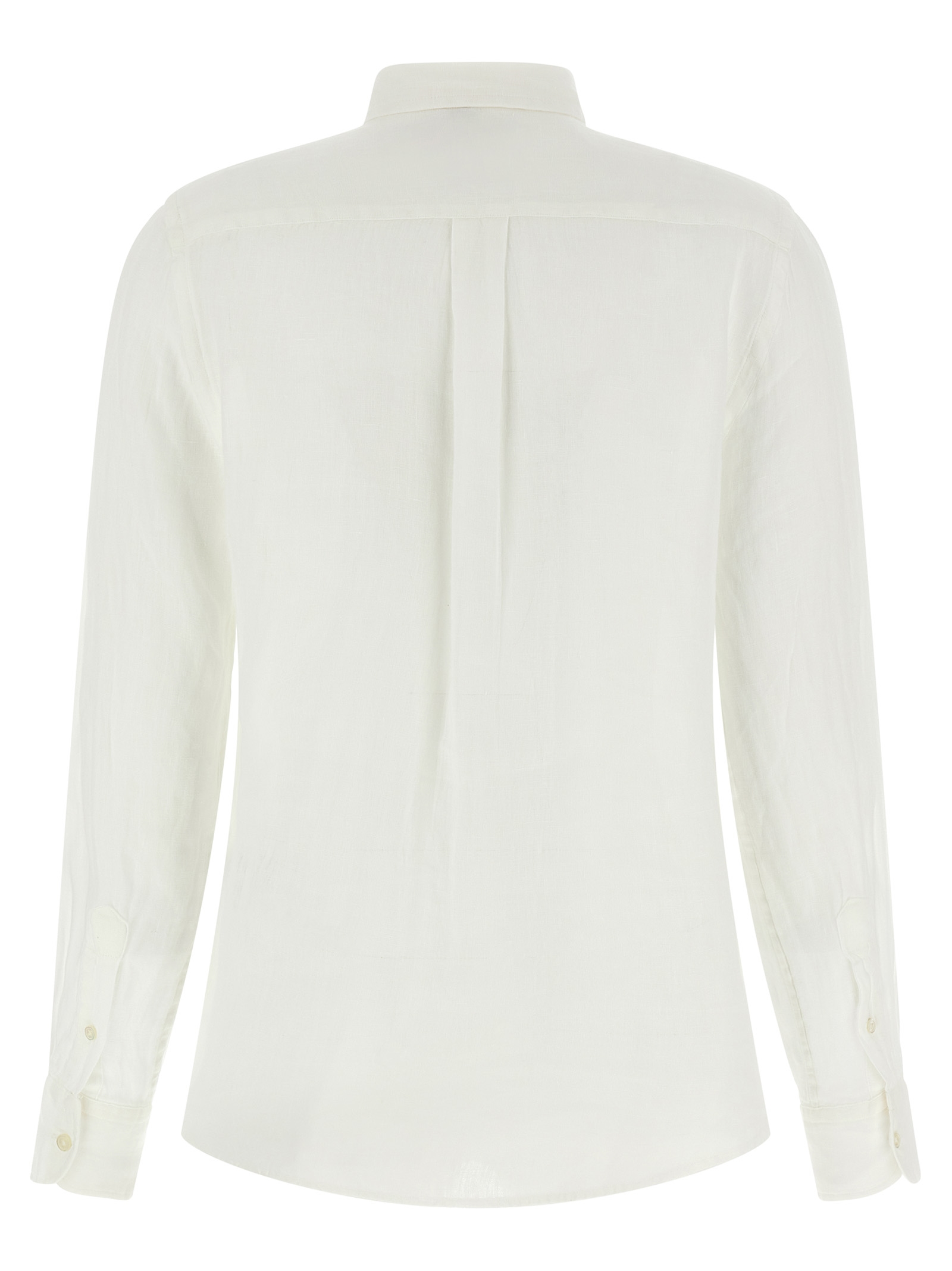 Linen shirt, front logo embroidery, button closure, long cuffed sleeves.