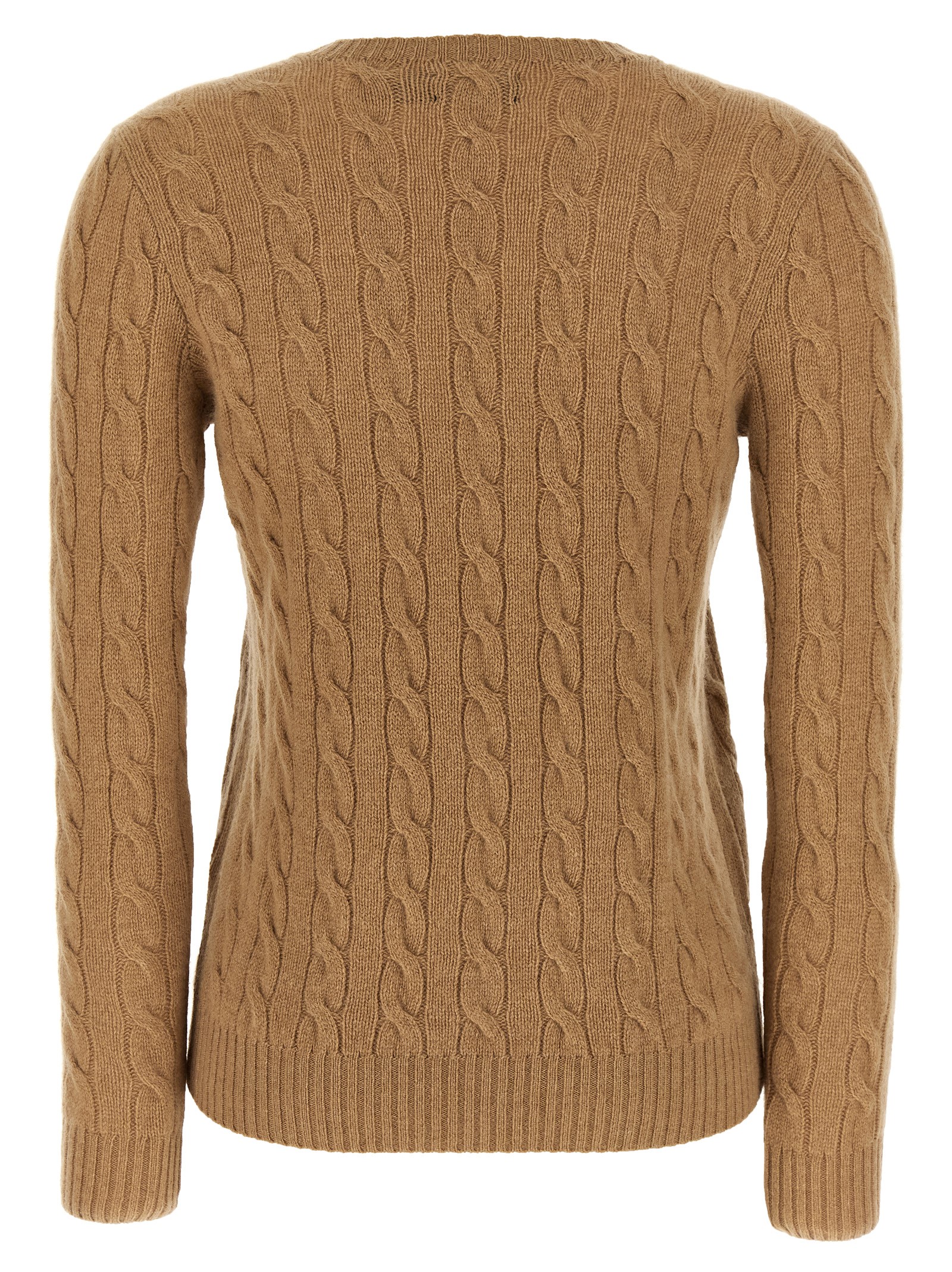 'Julianna' wool and cashmere blend sweater with braided pattern, front logo embroidery, crew neck, long cuffed sleeves.
