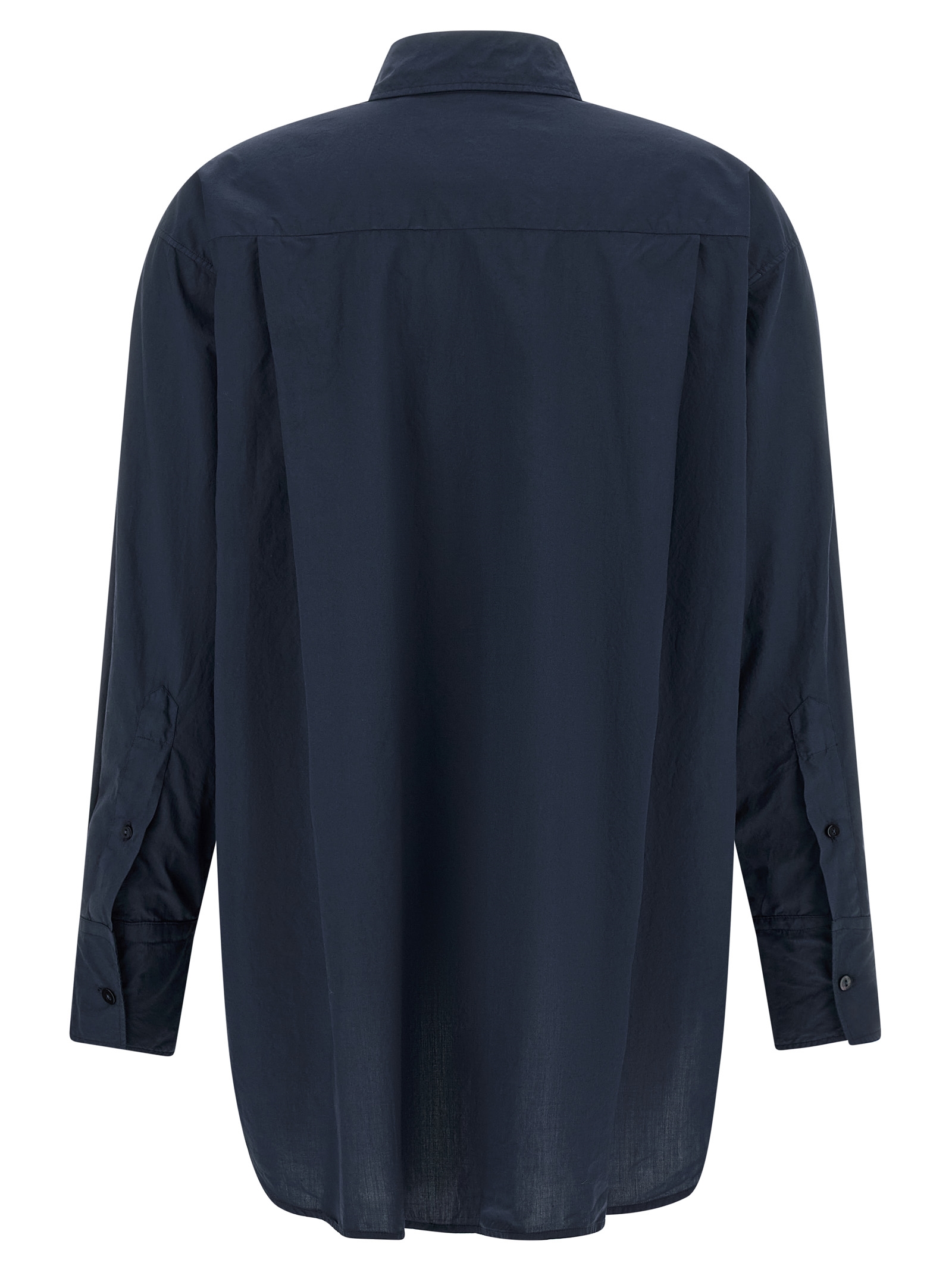 Рубашка из хлопкового поплина «Тесса», заостренный воротник, застежка на перламутровые пуговицы спереди, длинные рукава с манжетами и приспущенными плечами, закругленный и асимметричный подол.