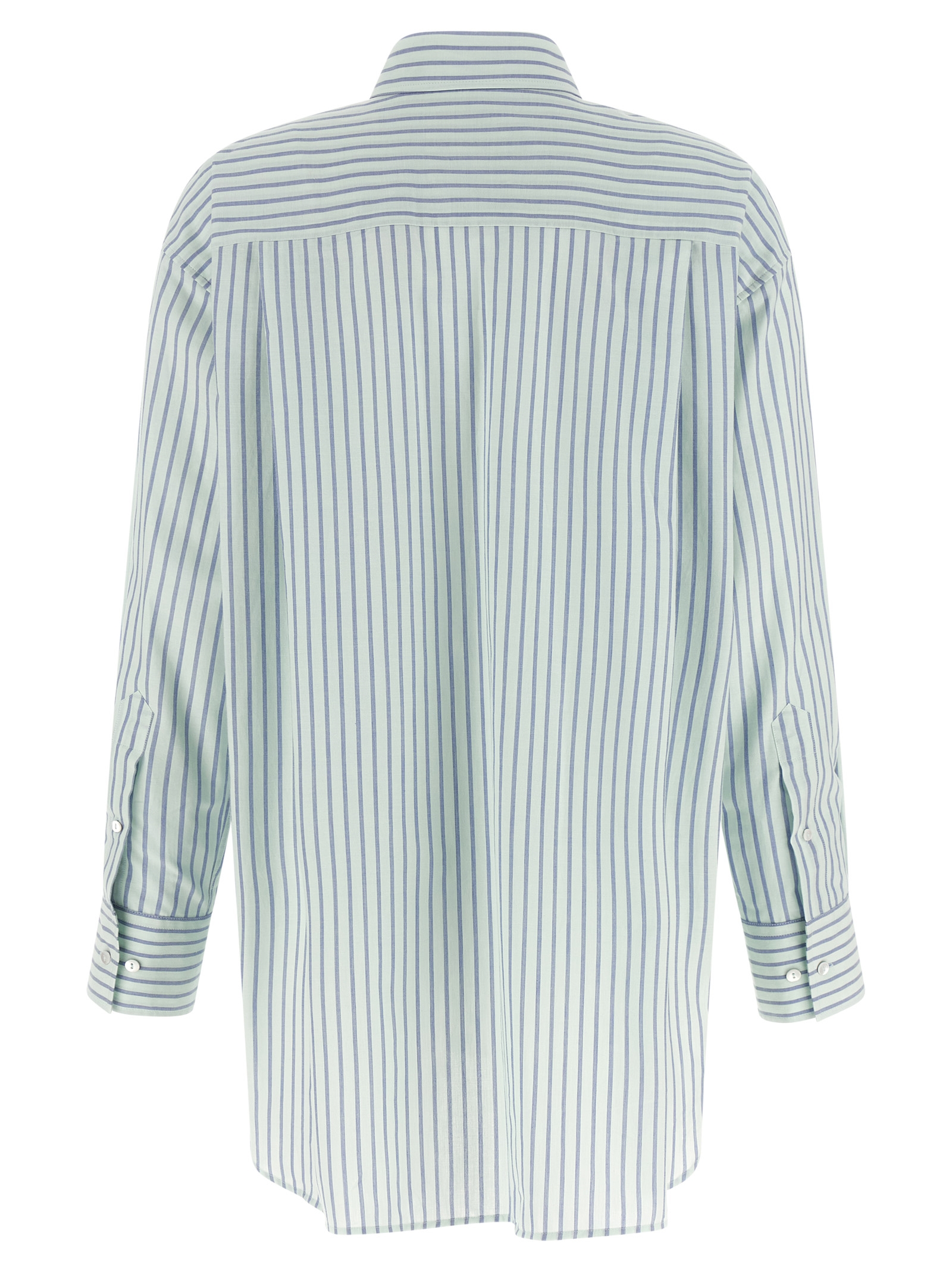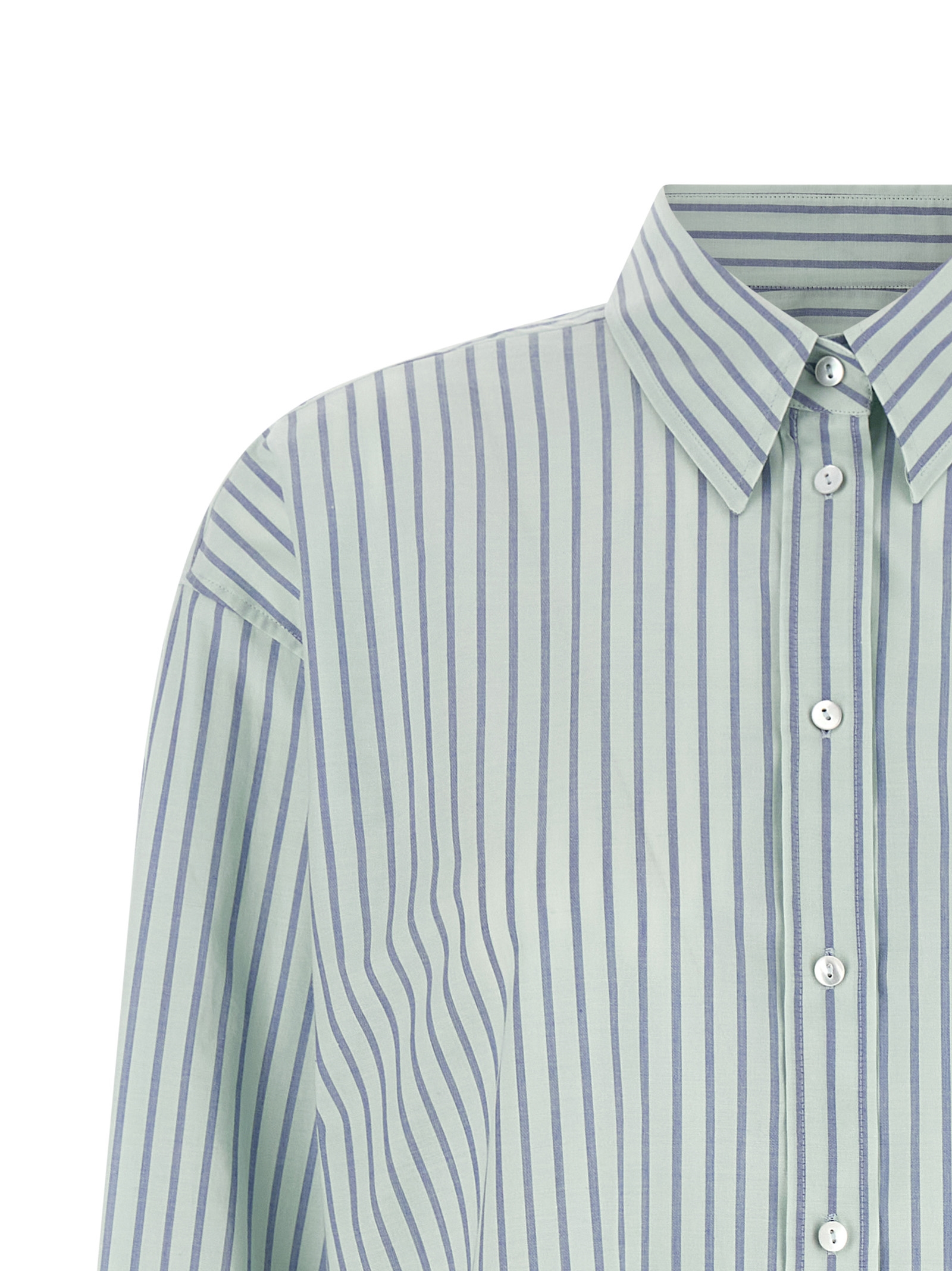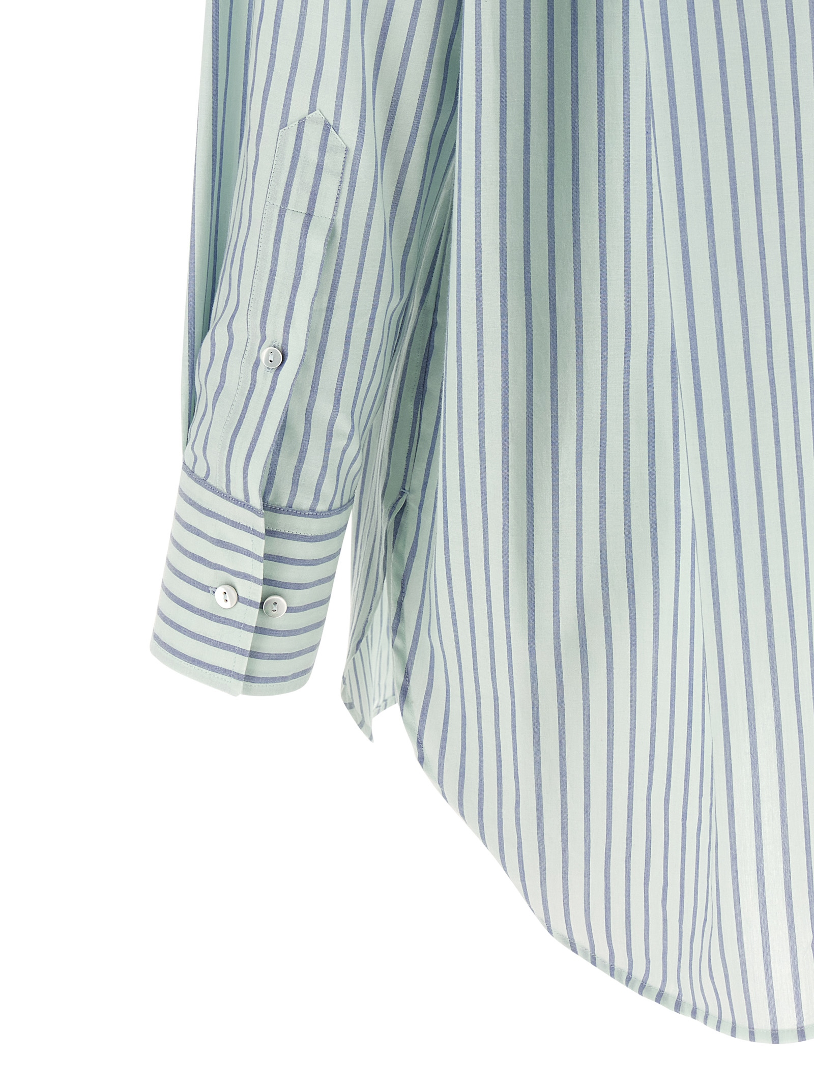 Рубашка «Тесса» из хлопкового поплина в полоску, с заостренным воротником, застежкой на перламутровые пуговицы спереди, длинными рукавами с регулируемыми манжетами и приспущенными плечами, закругленным и асимметричным низом.Характеристики товара