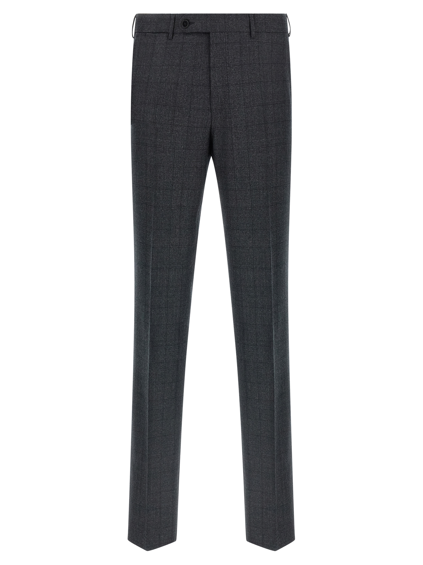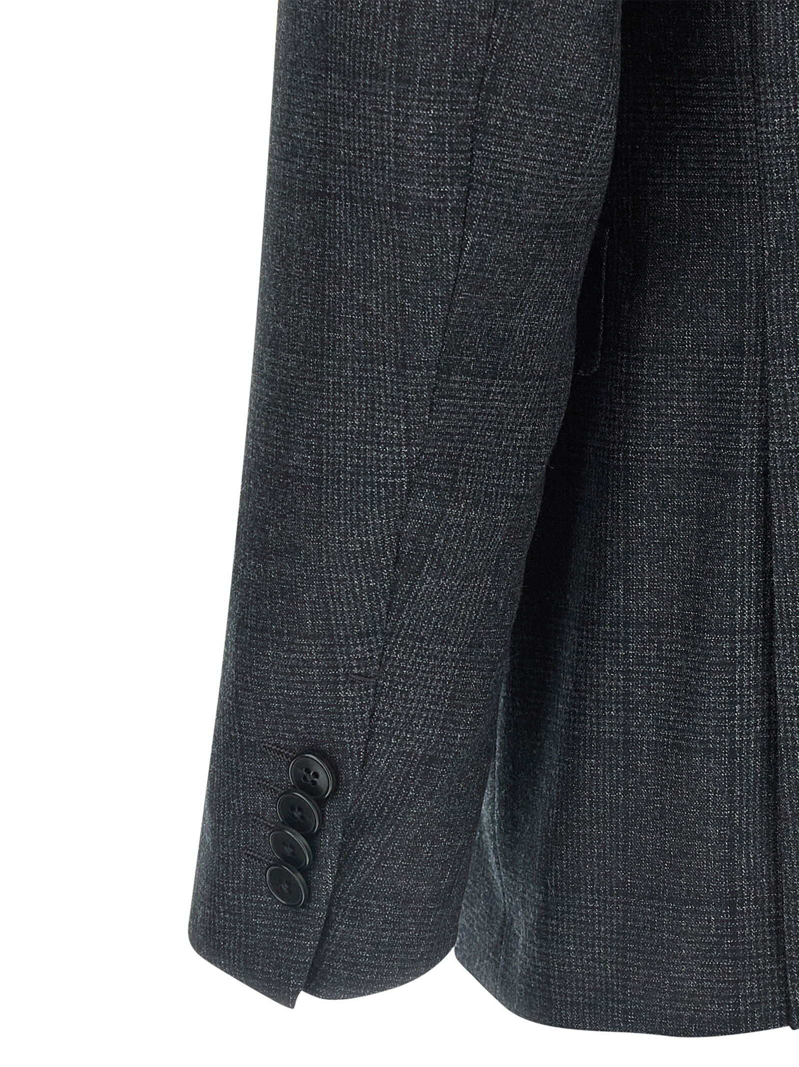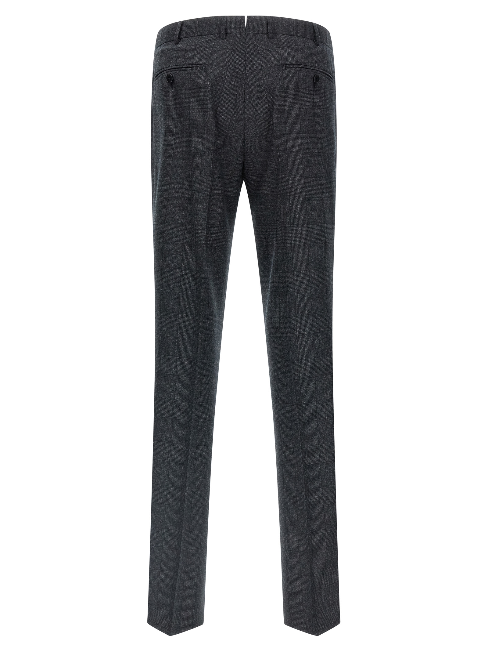 One hundred and twenty thousand patterned wool dress Prince of Wales plaid consisting of single-breasted blazer with front button closure, mirror lapels, cupro lining, chest pocket, flap pockets, slightly padded shoulder strap, cuffs with opening buttonholes, back slits and regular flat front pants, stretched pleat, front 'americane' pockets, back welt pockets, zip and front button closure.