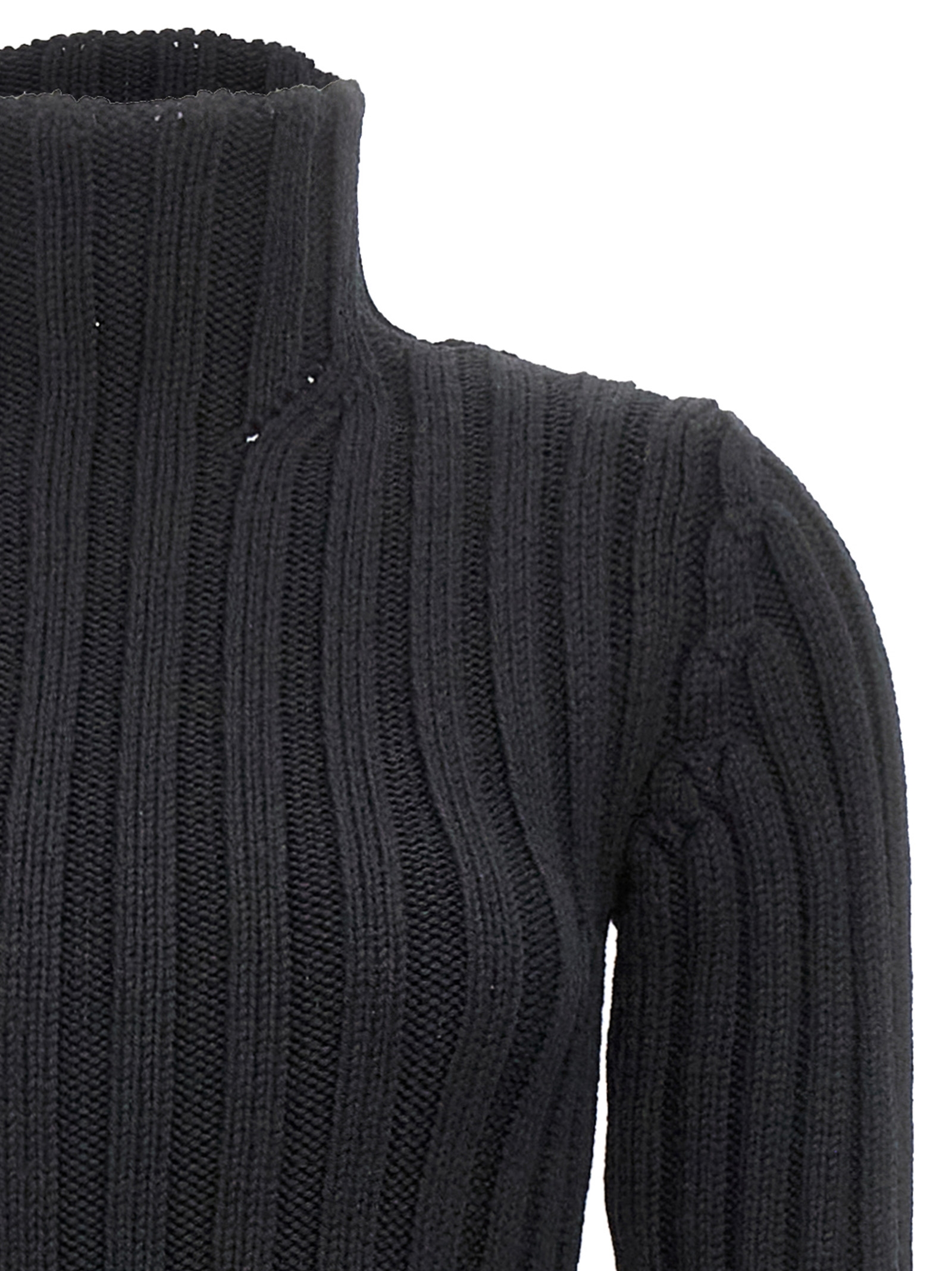'Cyntia' ribbed wool dress with slim fit high neck and long sleeves and a maxi side split.