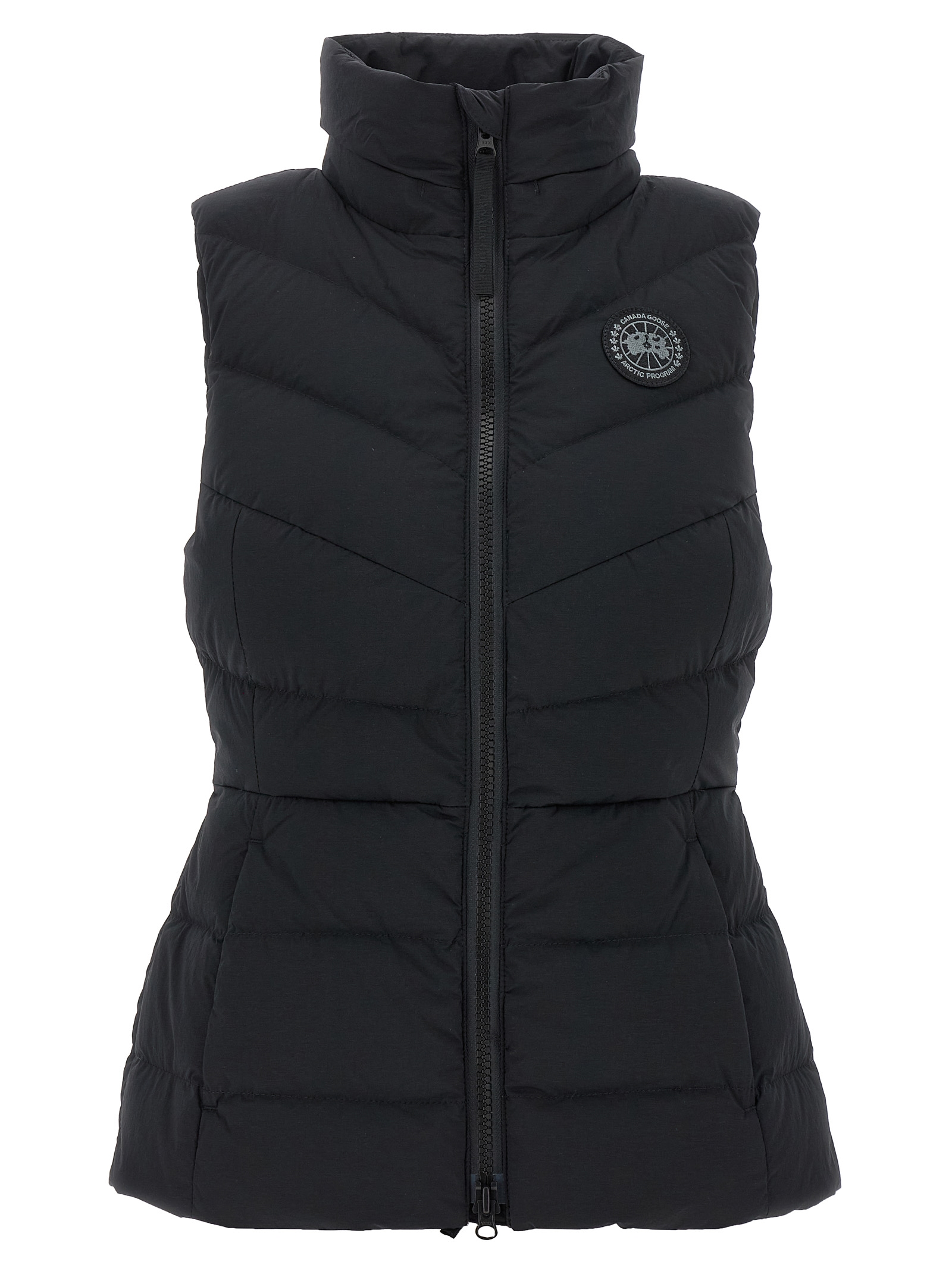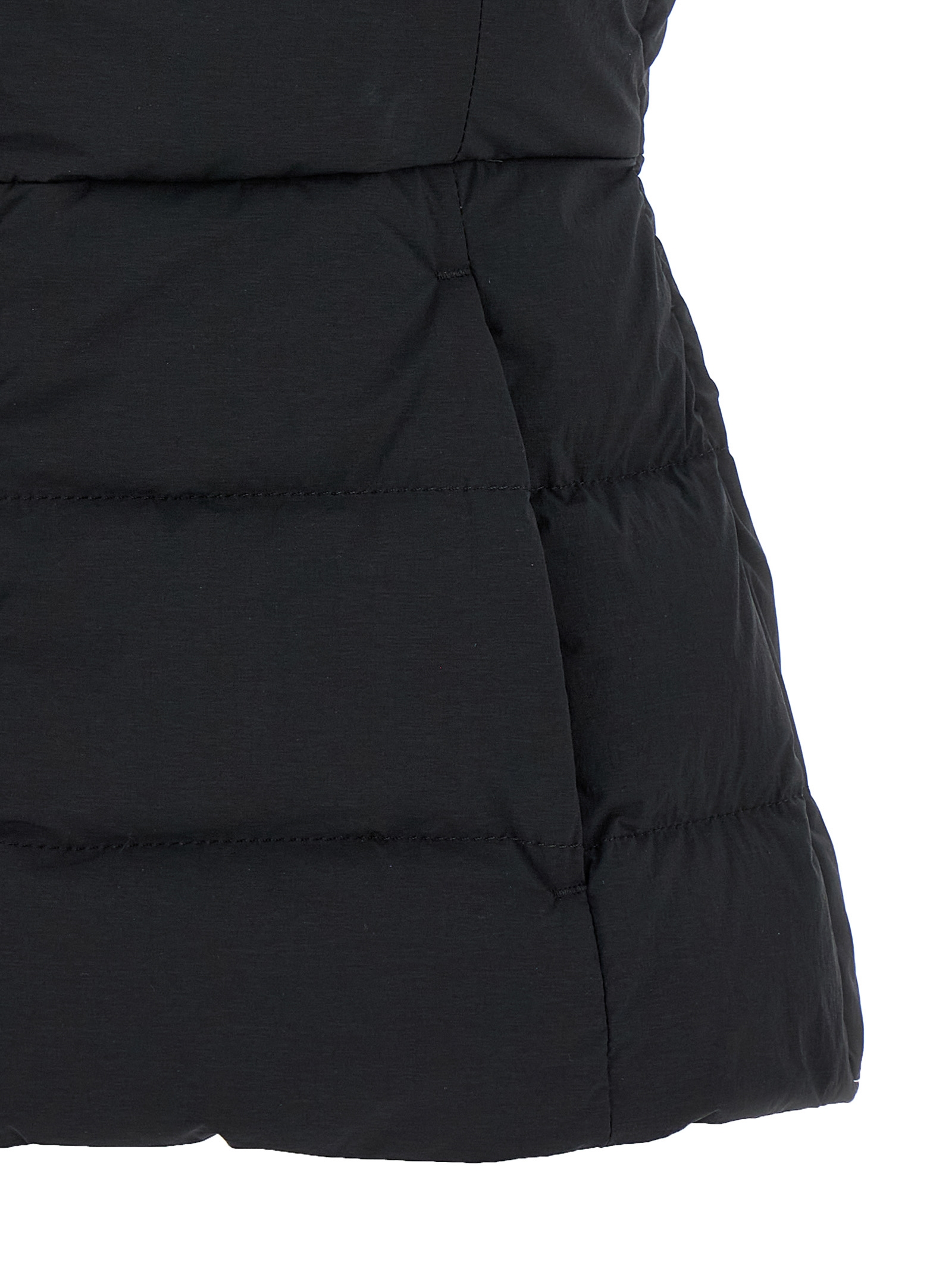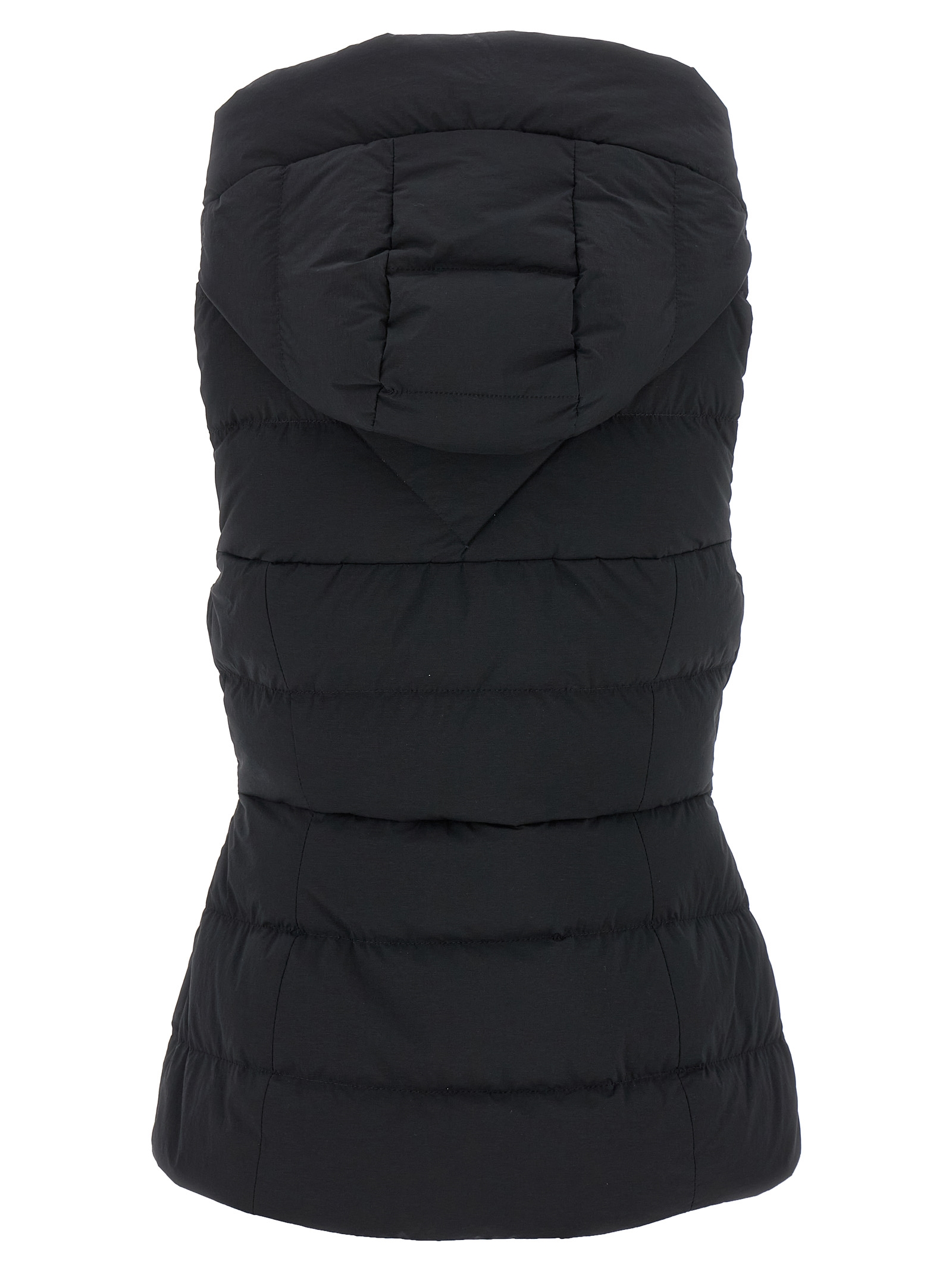 'Clair' quilted nylon vest with goose down padding, adjustable hood, tone-on-tone logo patch and front zip closure, pockets.