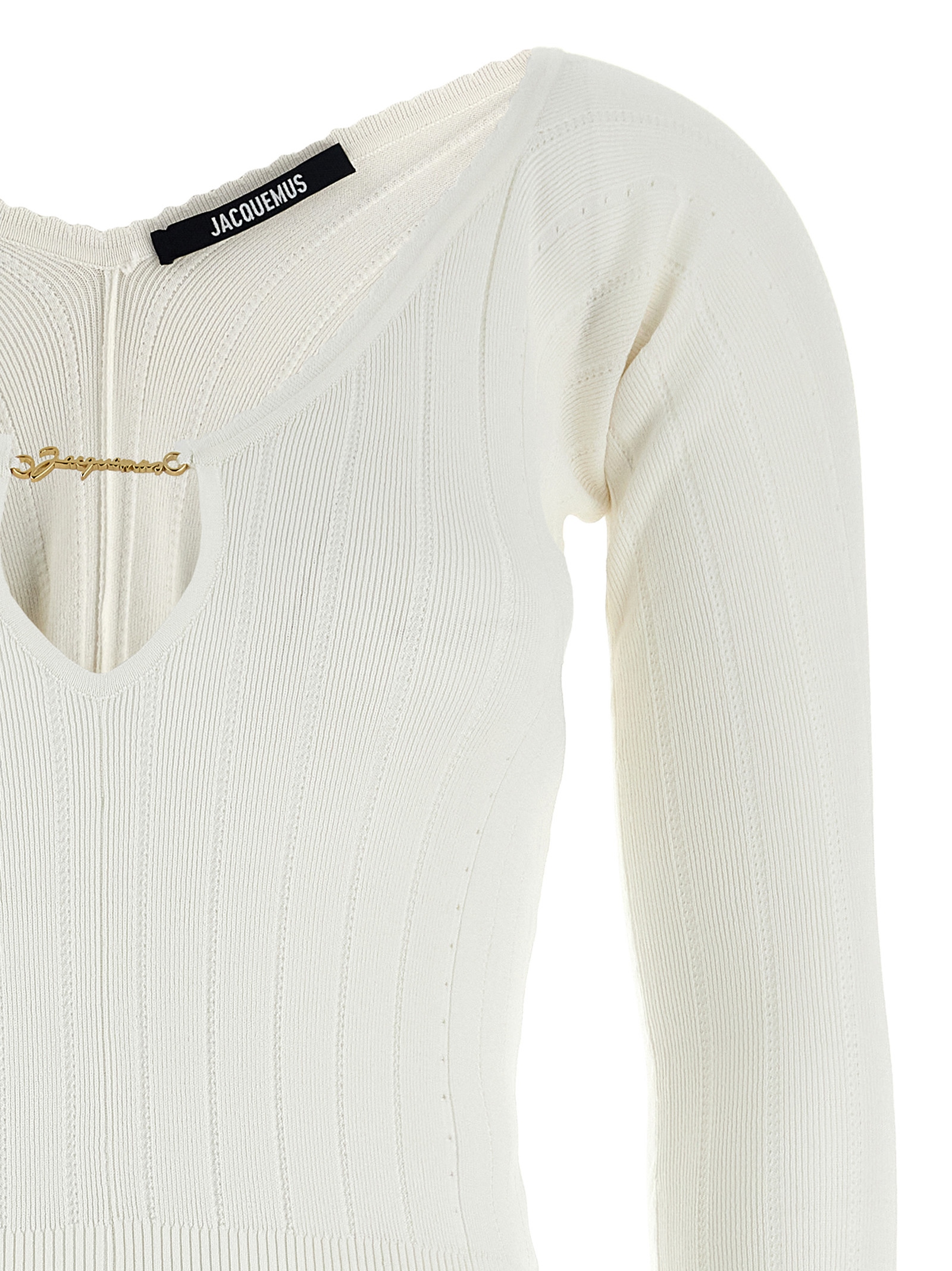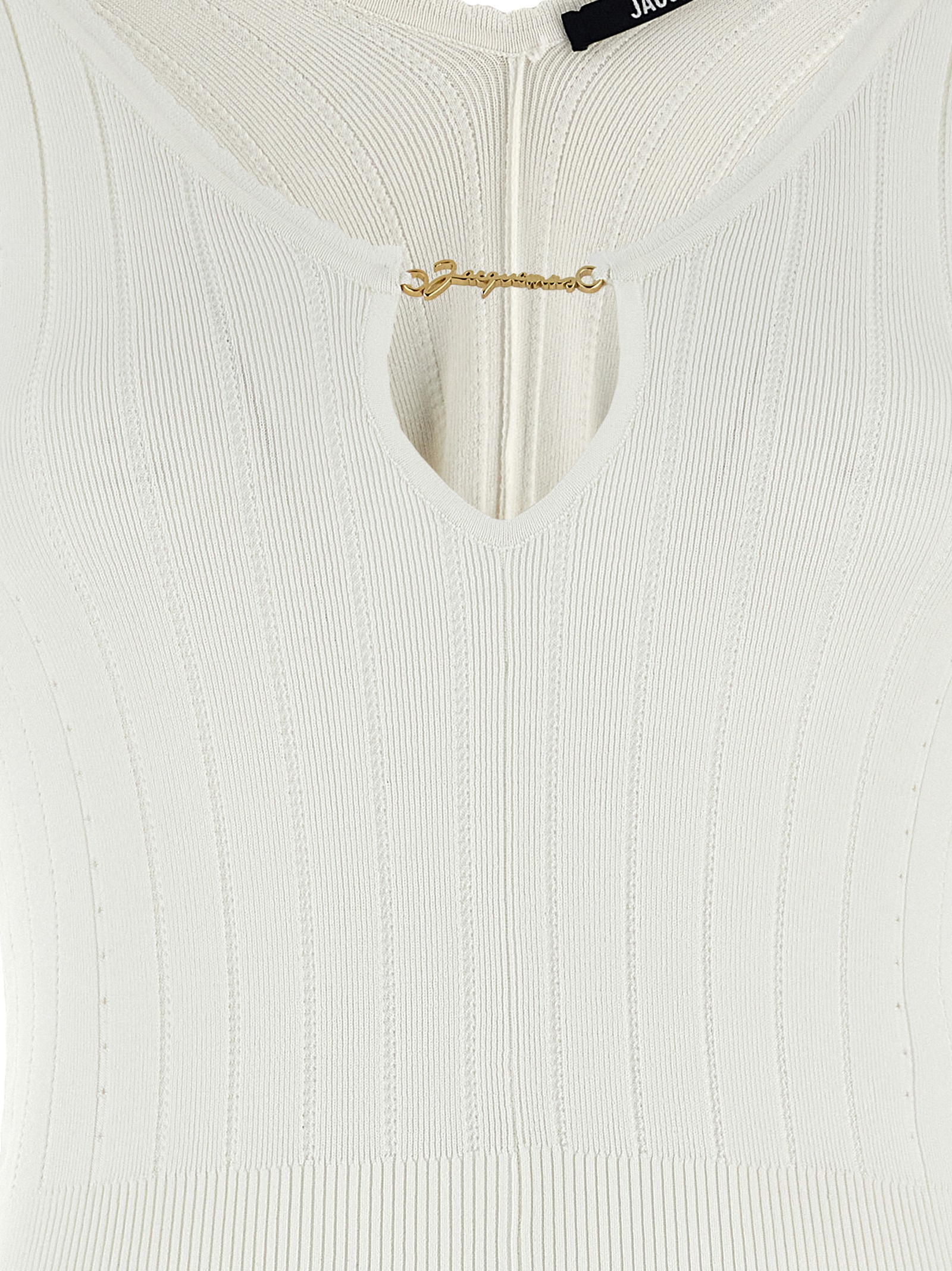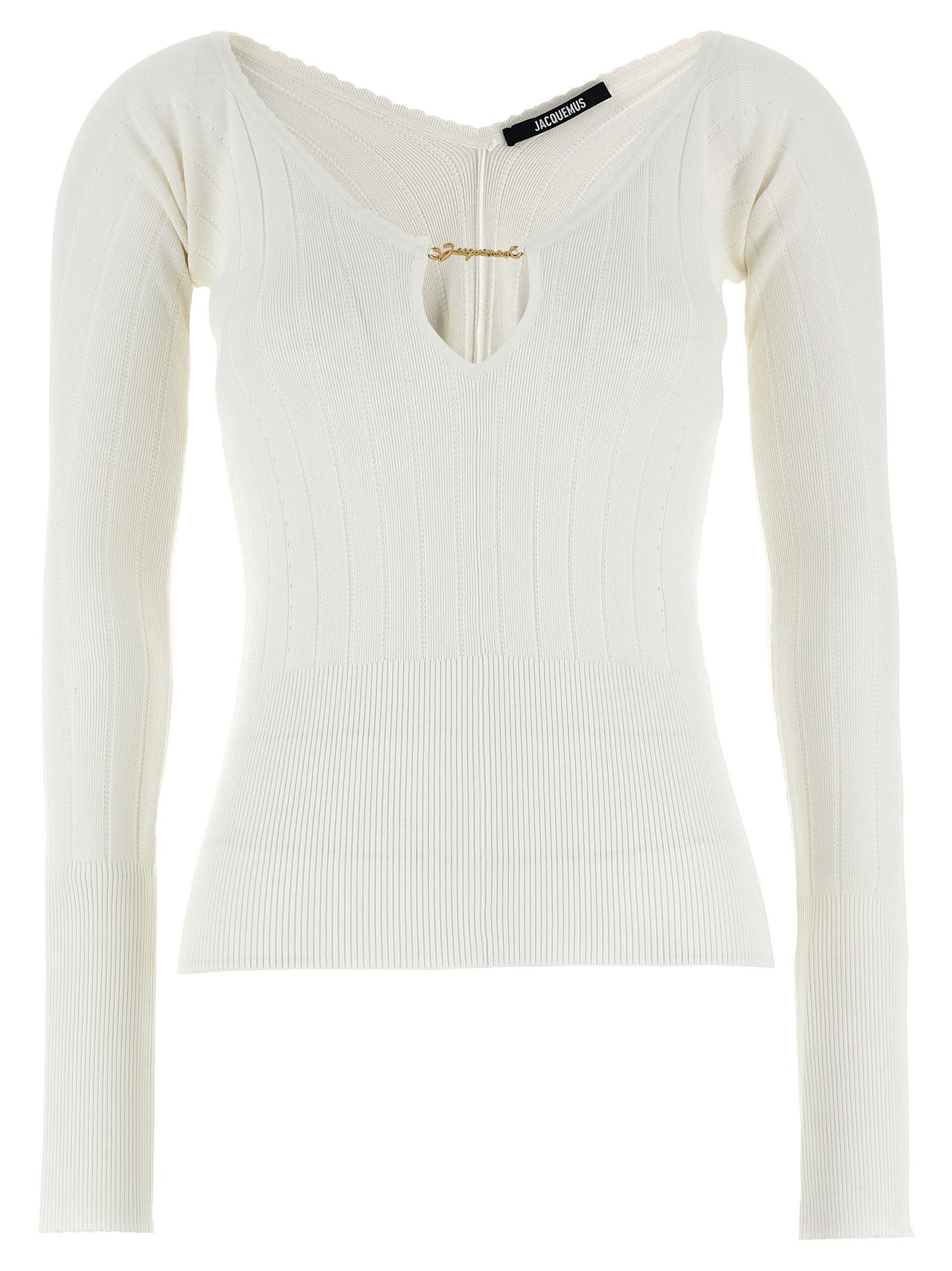 'Le haut Pralù' ribbed stretch viscose top, front cut-out detail with gold metal logo charm, long sleeves.Характеристики товара