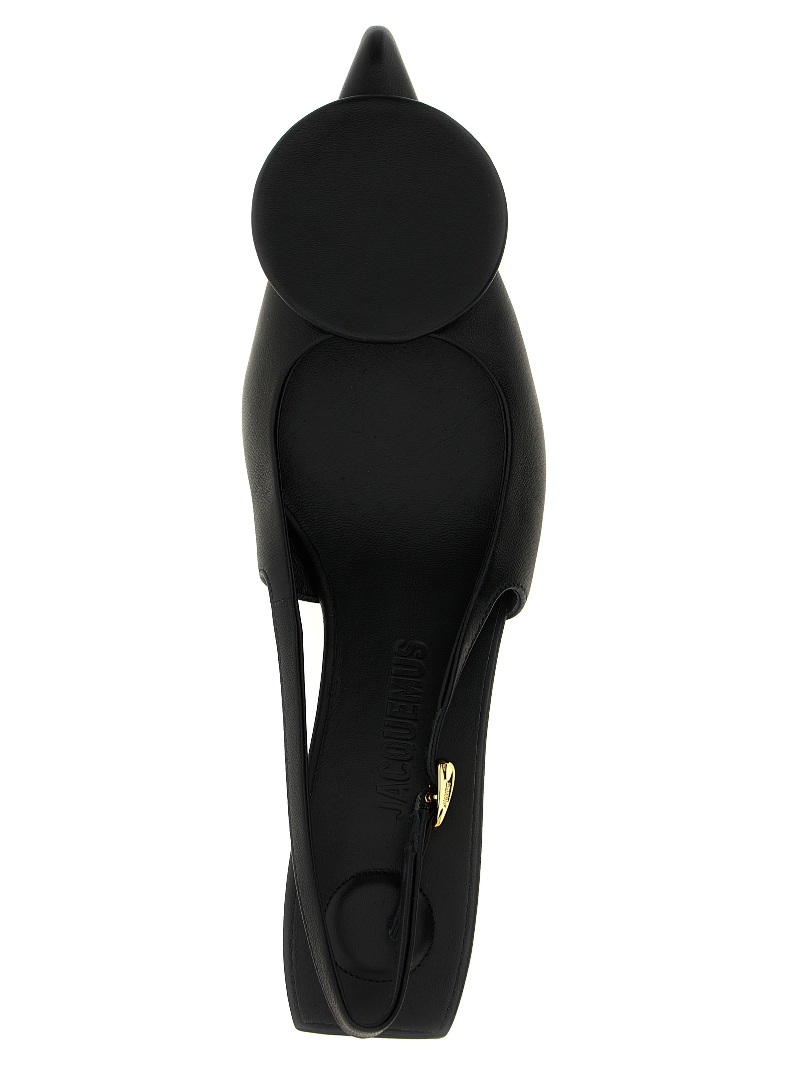 'Duelo B' leather slingbacks, pointed model with different front detail application for each shoe, adjustable strap, padded insole, leather sole, heel.Характеристики товара