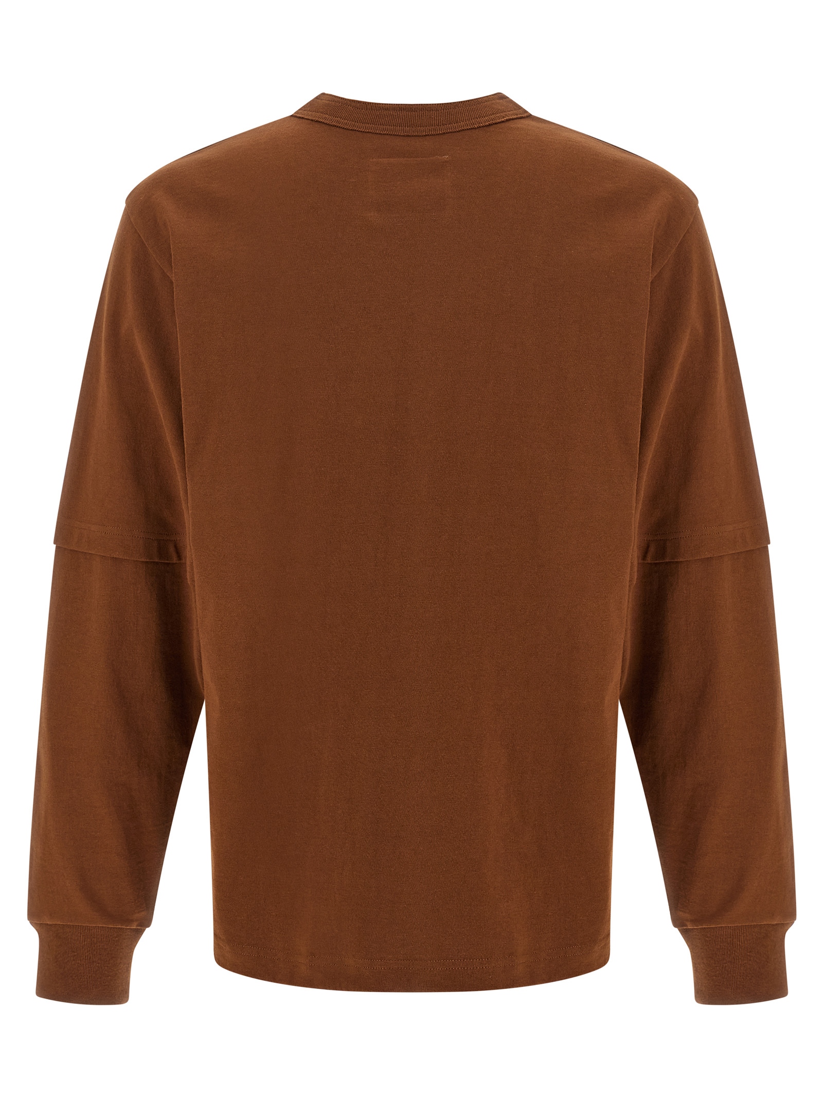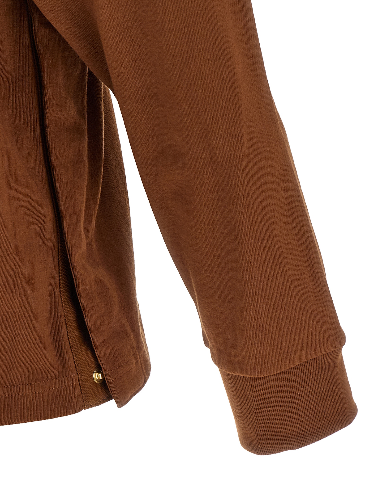Sacai x Carhartt Wip cotton capsule T-shirt, cotton canvas pocket with logo patch appliqué, crew neck, long cuffed sleeves and double layer trompe l'oeil, side slits with snap buttons.