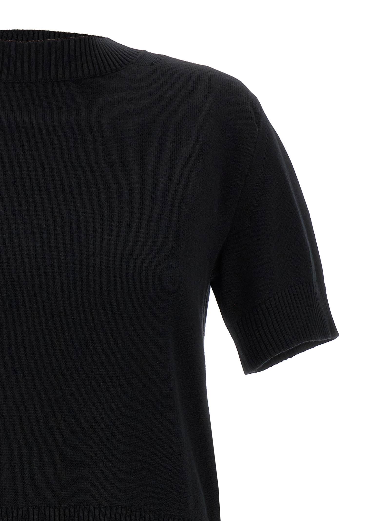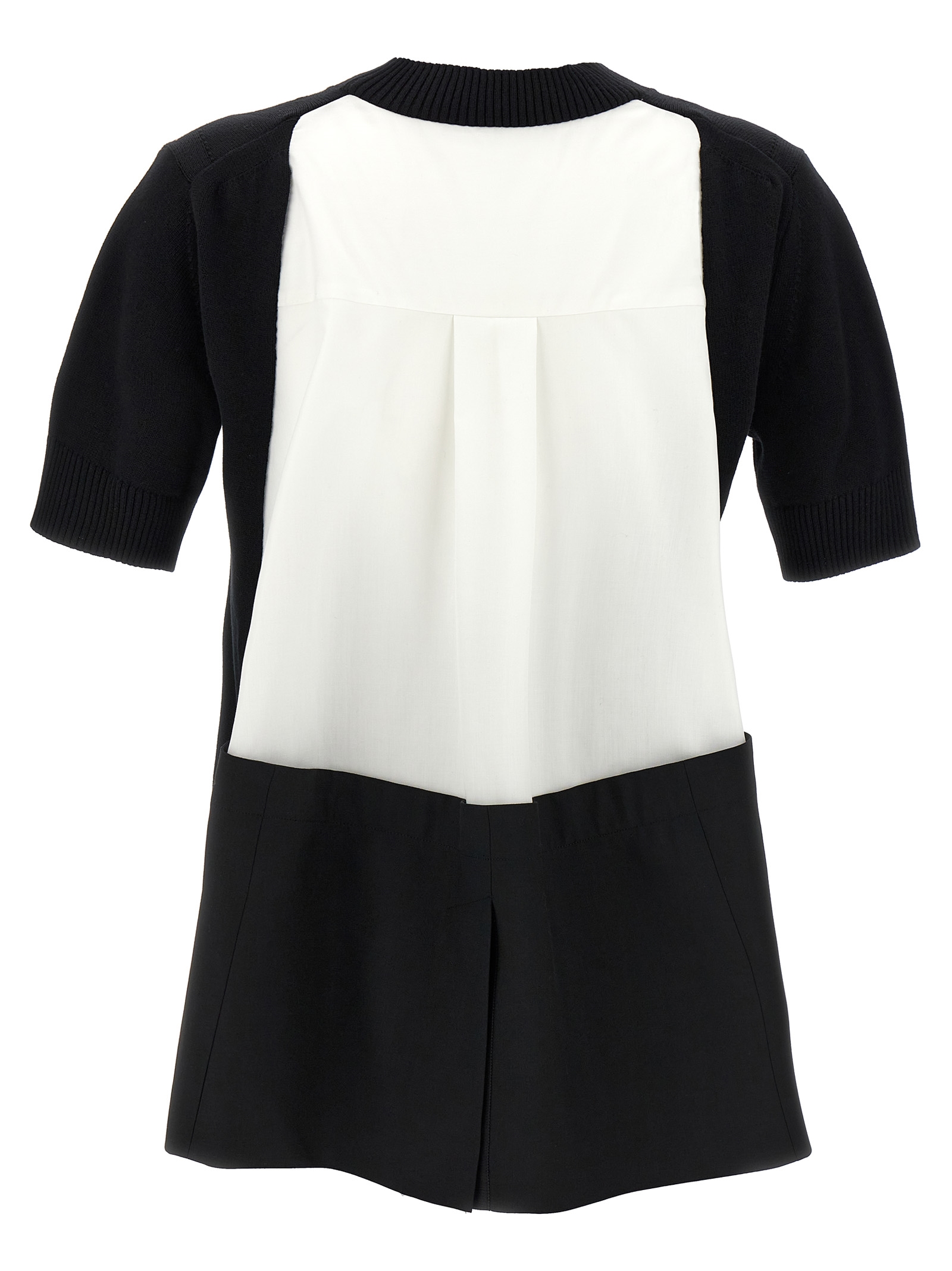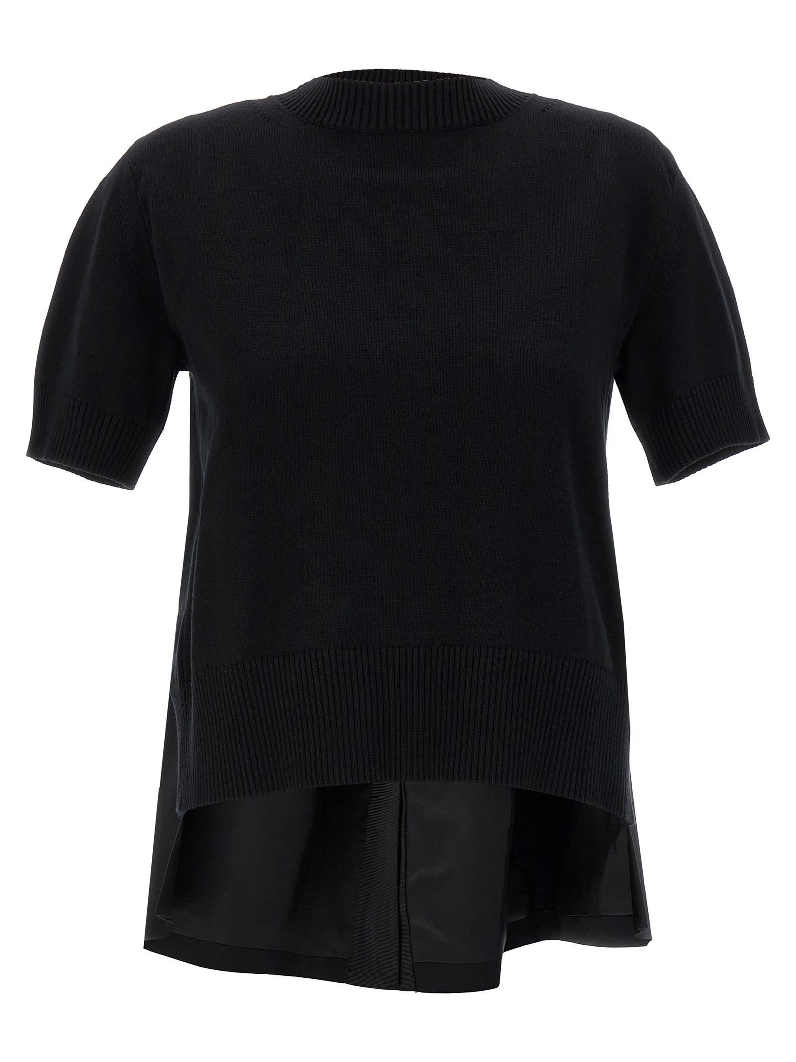 Asymmetrical cotton blend sweater with patchwork panels at the back, crew neck, split and inner mesh at the back, and short sleeves.Характеристики товара