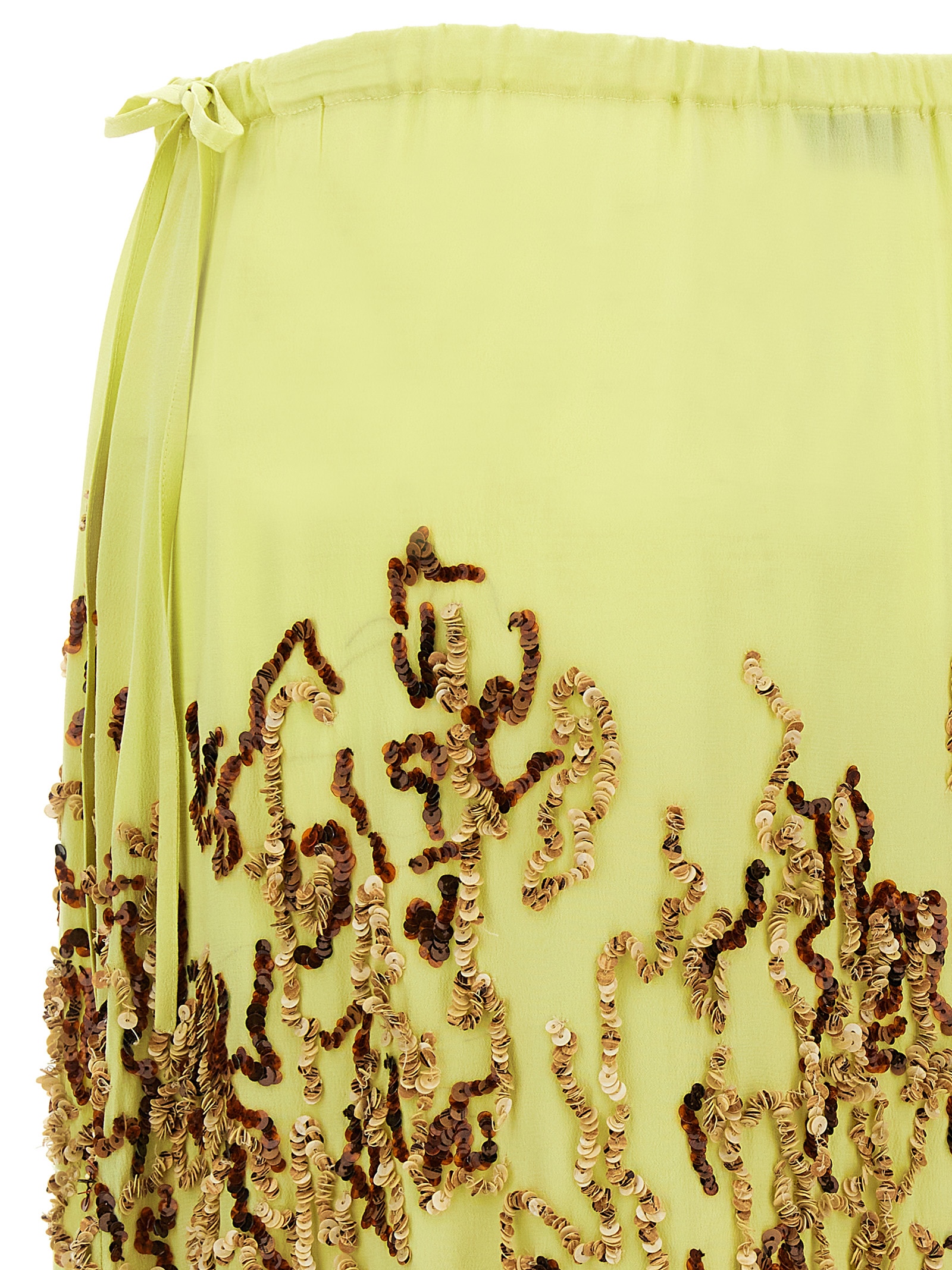 Salga' silk midi skirt with sequin embroidery, adjustable drawstring at the waist.