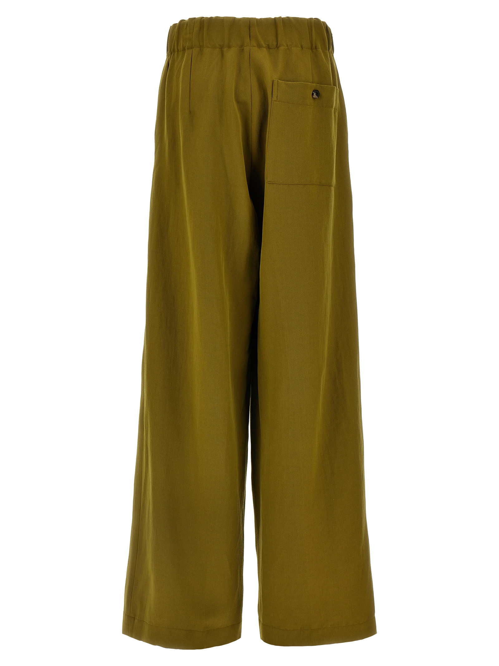 'Pila' wool blend pants, loose leg, elastic waistband with drawstring, pleats, pockets.