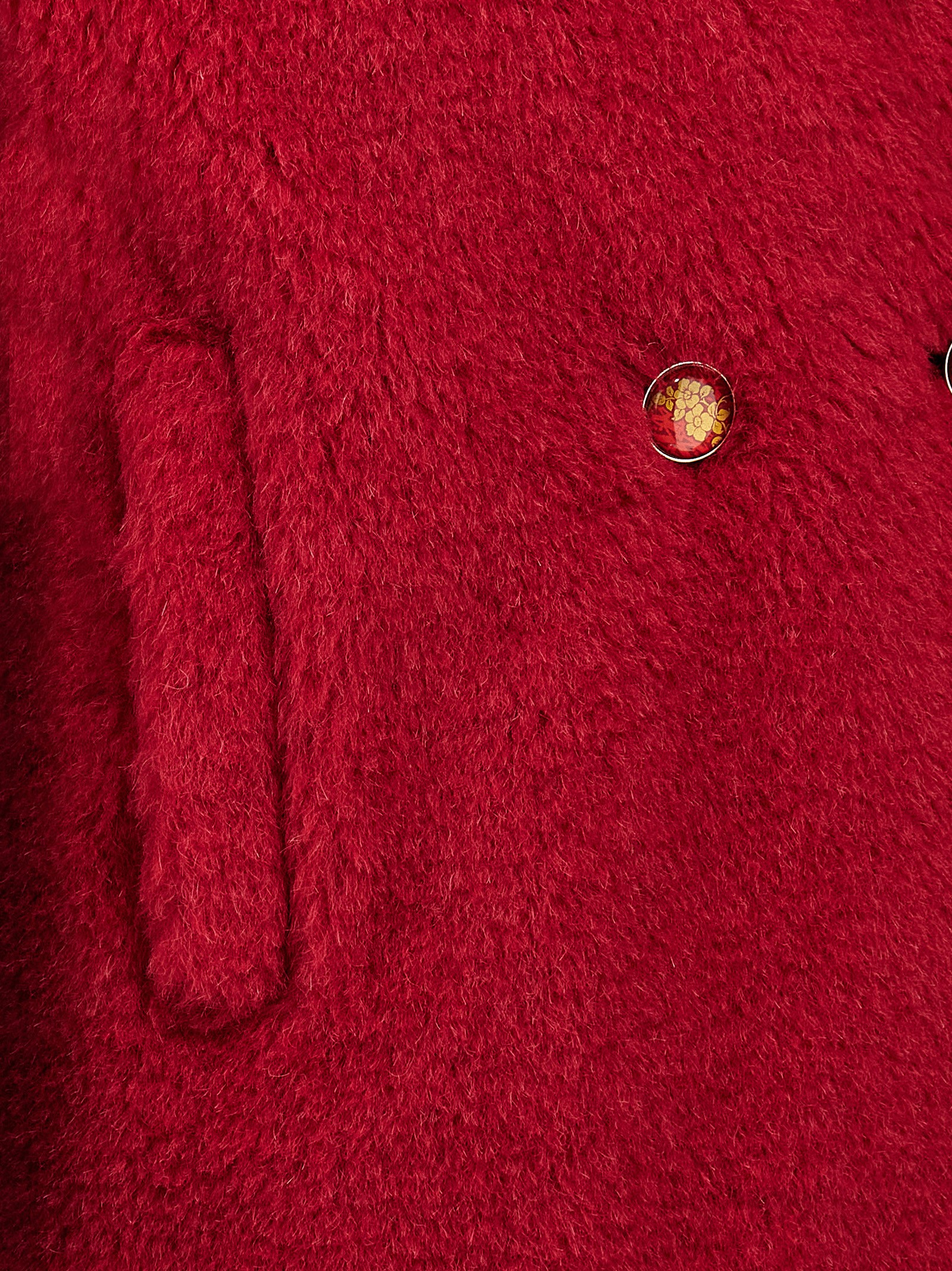 'Cuba' alpaca and wool teddy jacket on a silk base, lapel collar, silk twil lining with logo with central floral embroidery, long sleeves with dropped shoulders, double-breasted button closure, pockets.