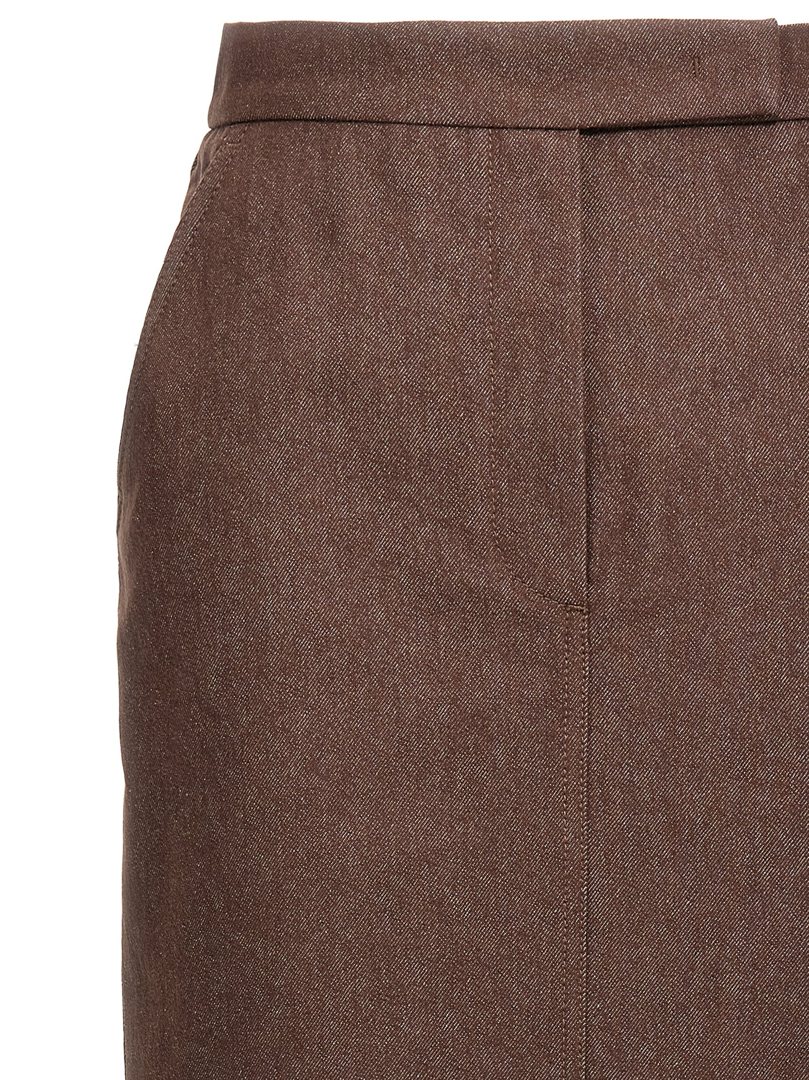 Long 'Pianosa' denim-effect cotton skirt, unlined with back split, pockets, zip hook and front button closure.