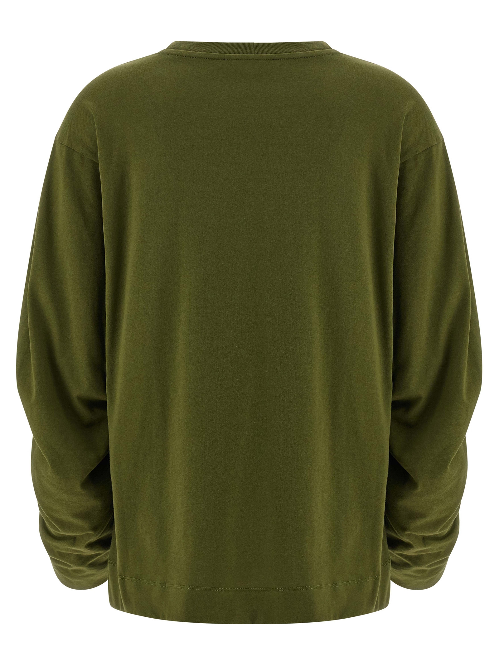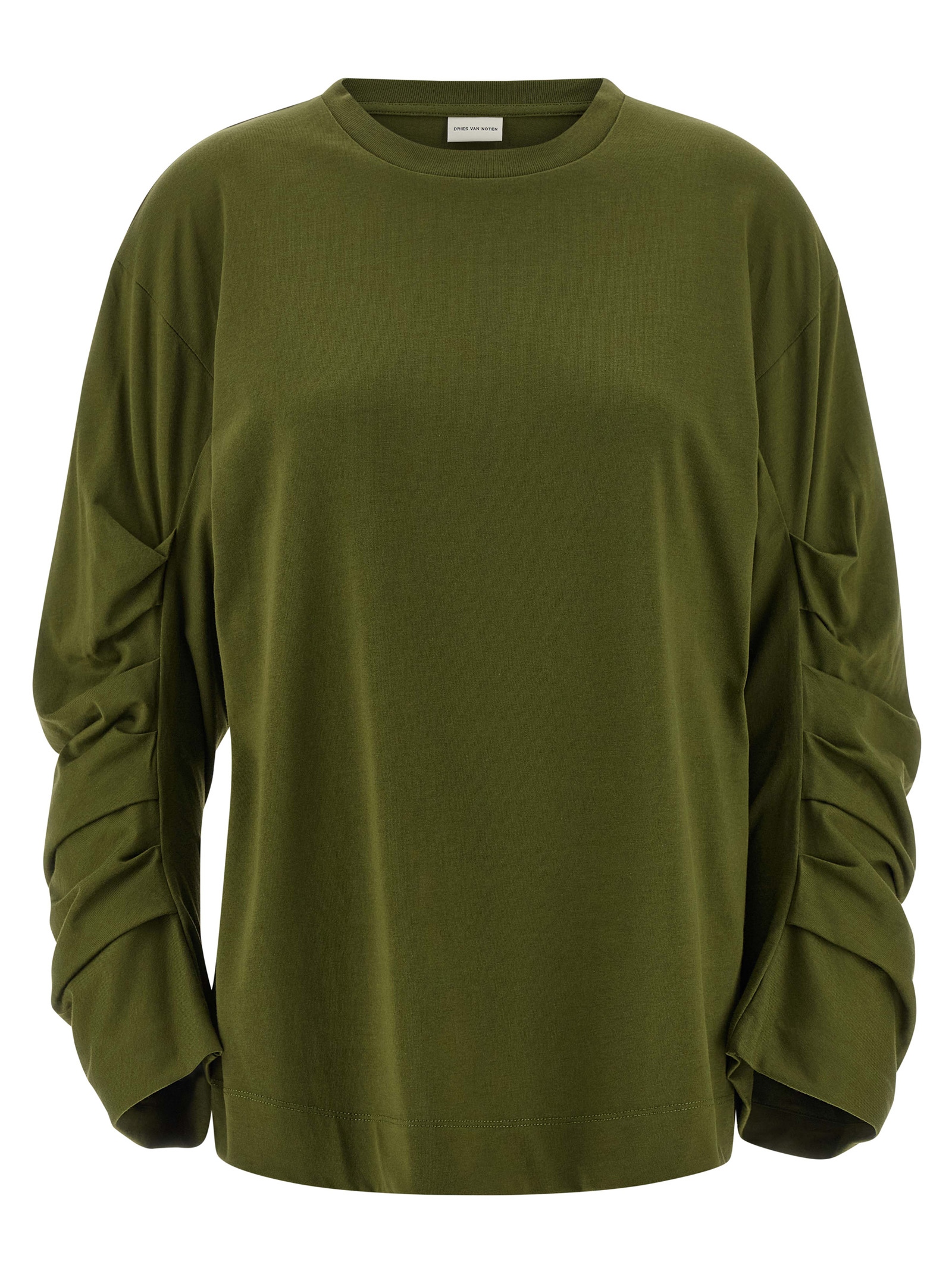 'Heynas' cotton jersey crew neck t-shirt with long pleated sleeves and dropped shoulders.