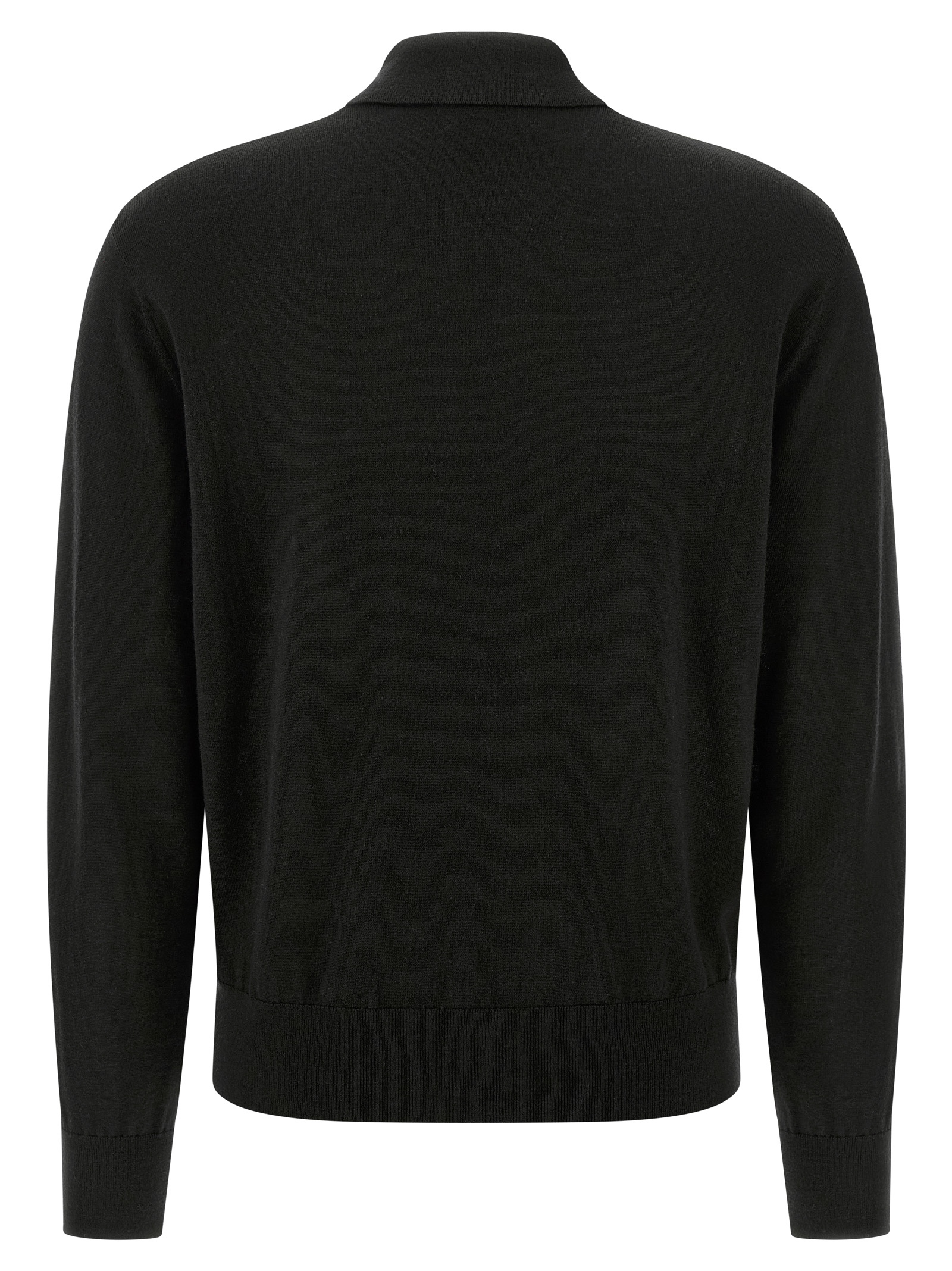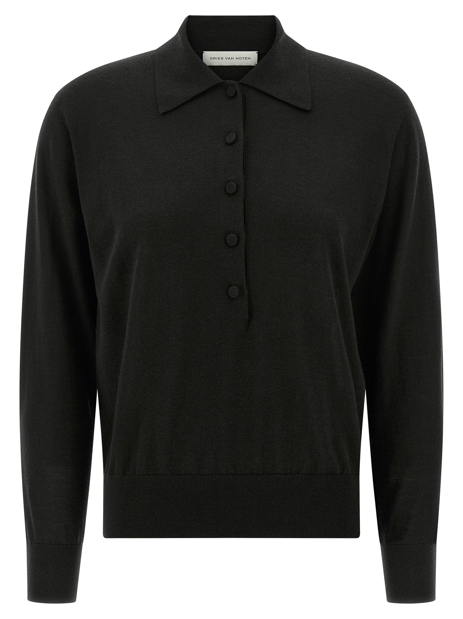 'Tuno' polo shirt in light merino wool with collar and buttons, long cuffed sleeves.
