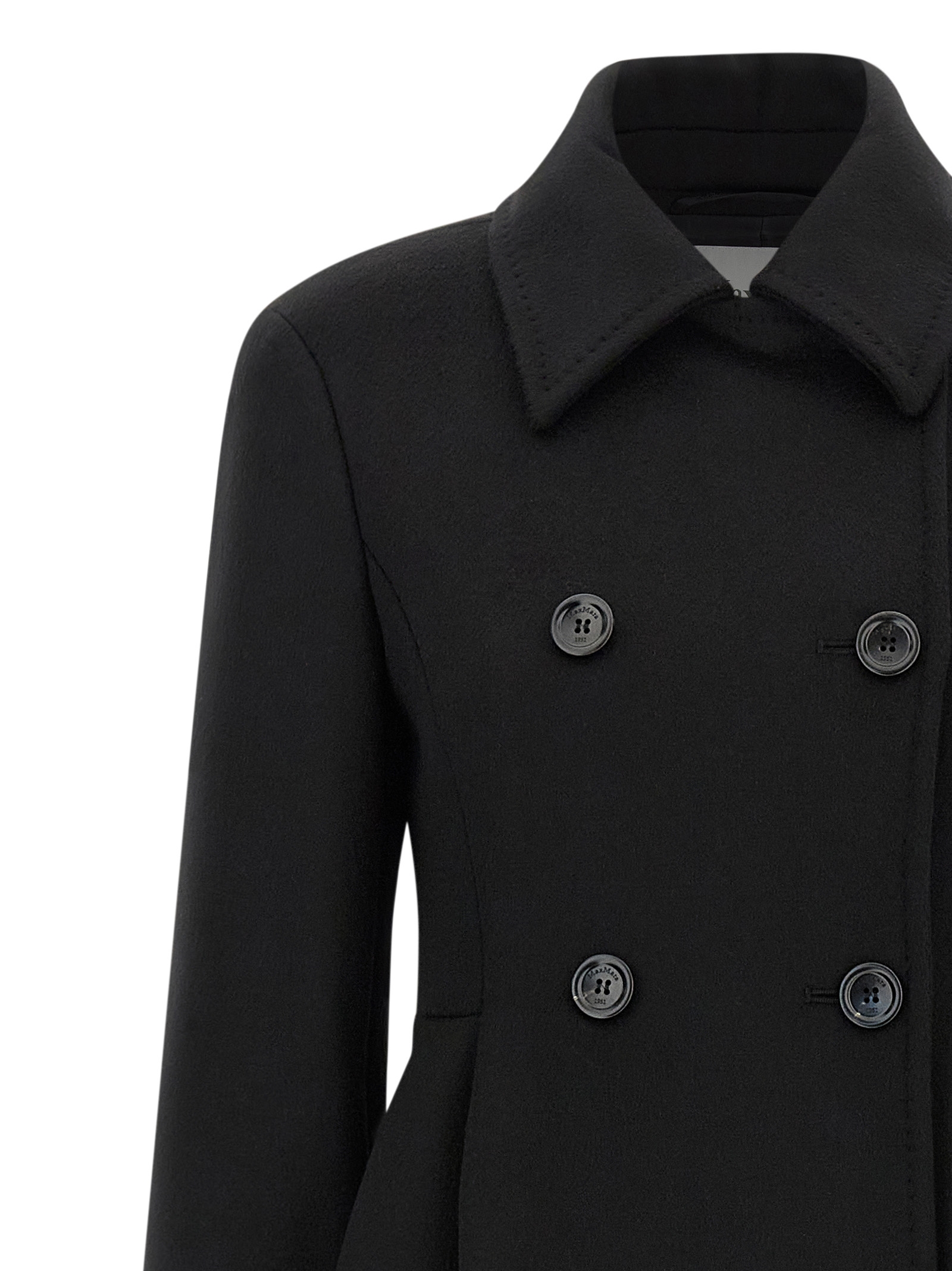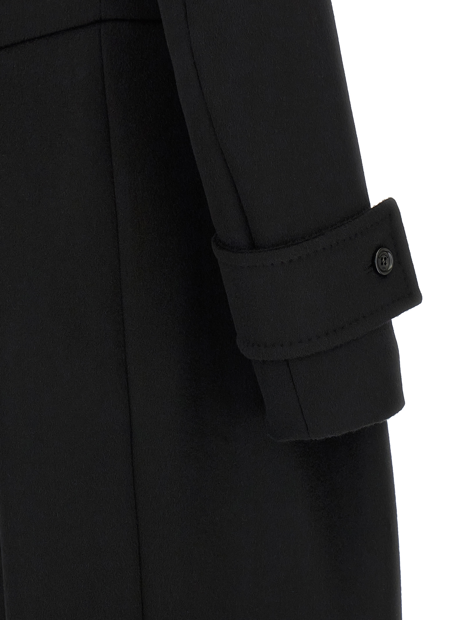 'Beati1234' long coat in double drap of baby camel, double-breasted model with front button closure, hourglass silhouette with pincer at the waist, shirt collar, pockets, structured and padded shoulder strap, long sleeves, kissed pleat at the back.