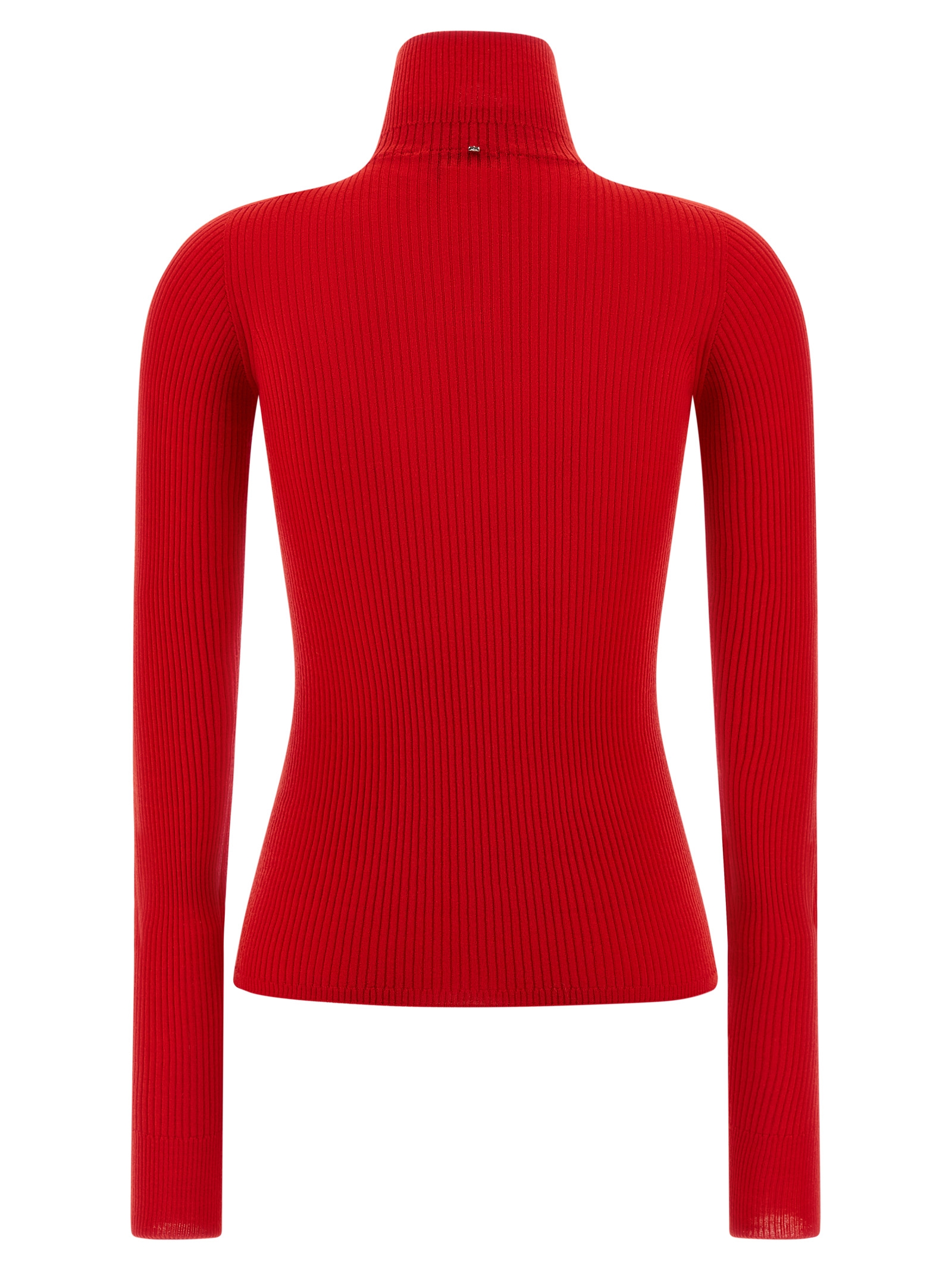 'Niagara' turtleneck sweater in pure virgin wool ribbed yarn, seamless knit, high neck, long cuffed sleeves.