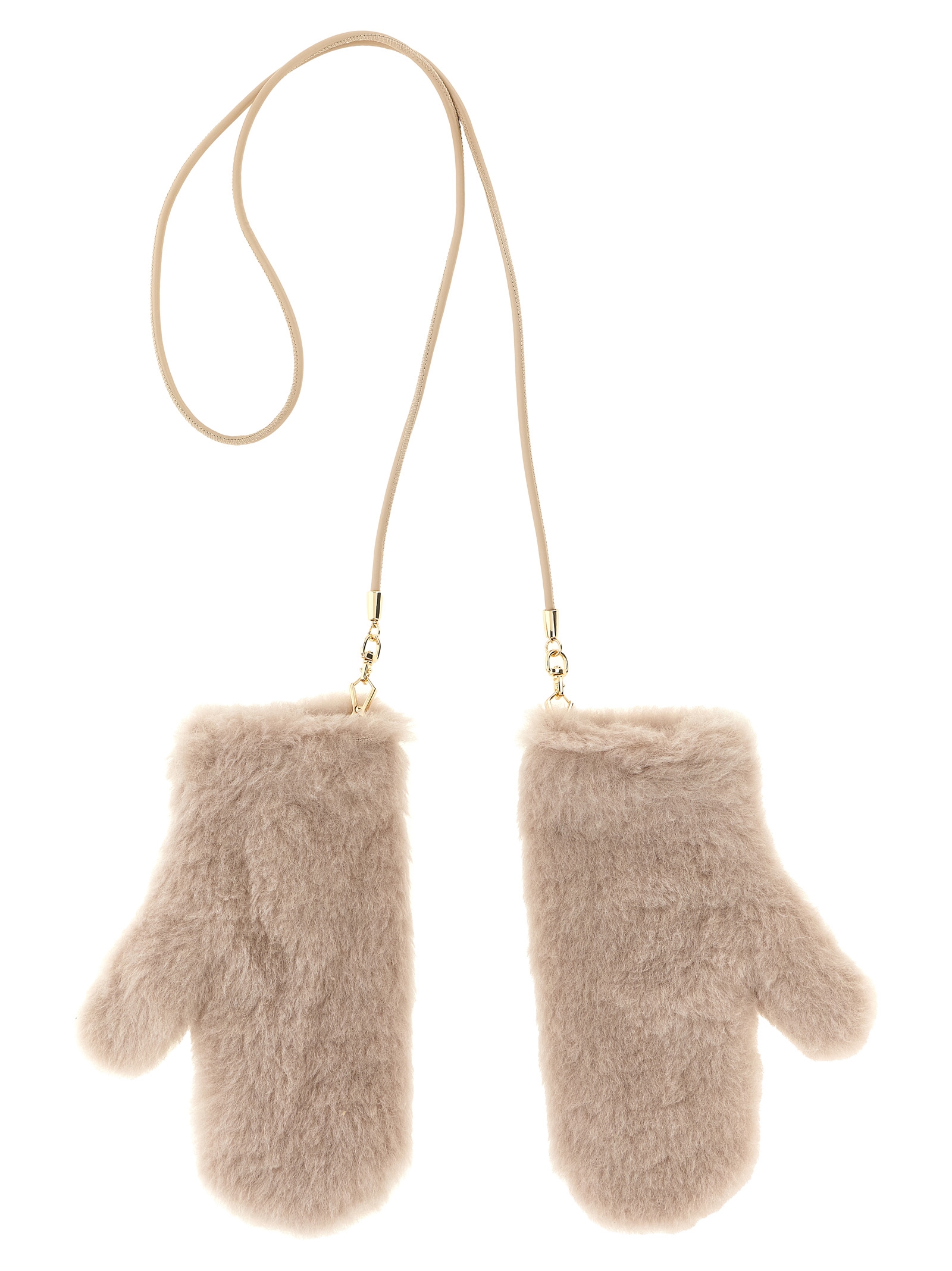 Ombrato mittens in alpaca and wool Teddy fabric on a silk base, pure wool yarn lining, removable cord with metal snap hook.Характеристики товара