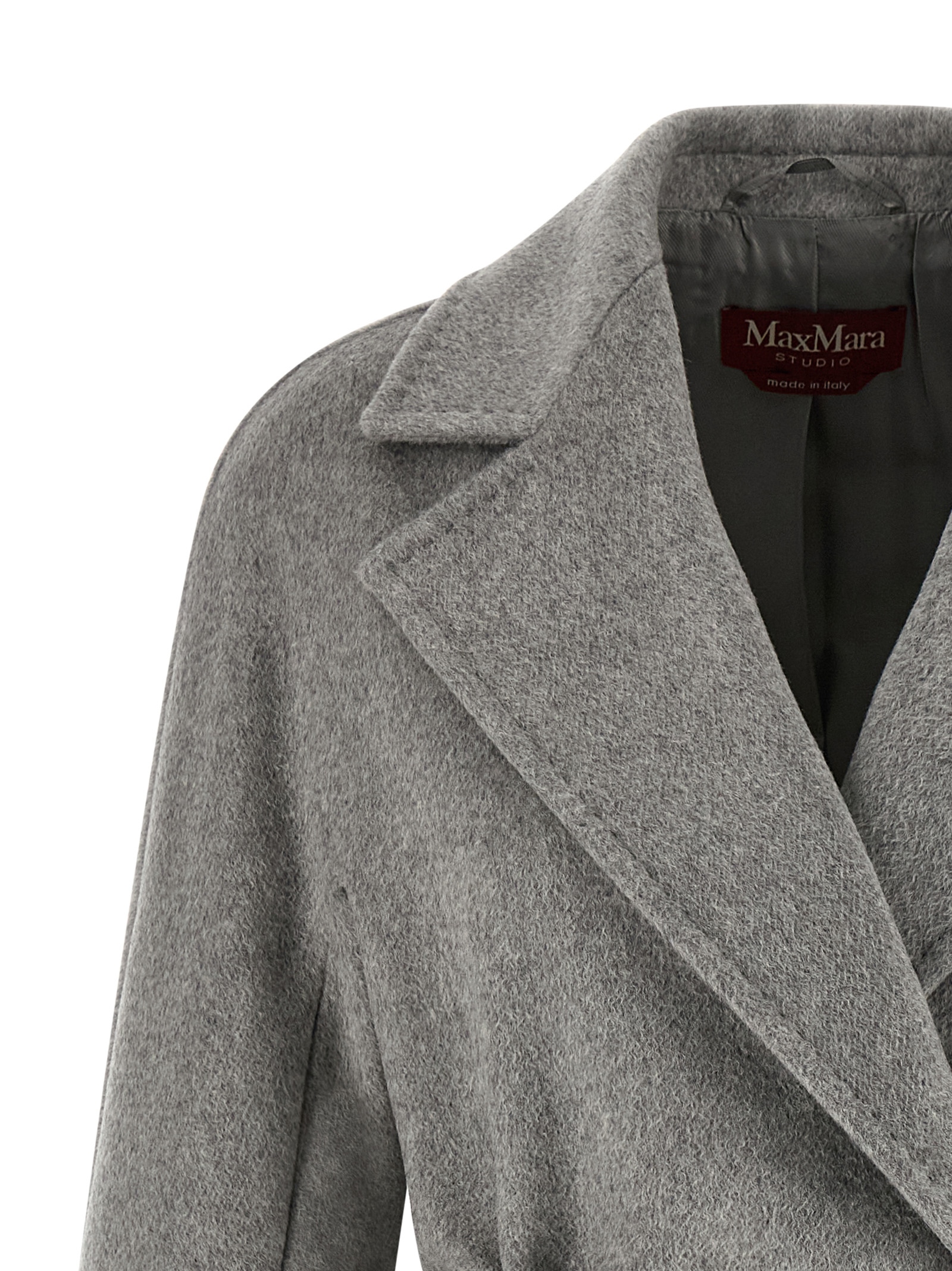 'Panteon' midi coat in pure cashmere, alpaca and wool sable drap with double-breasted button closure and lapel collar, pockets, long kimono sleeves, viscose lining, removable belt.Характеристики товара