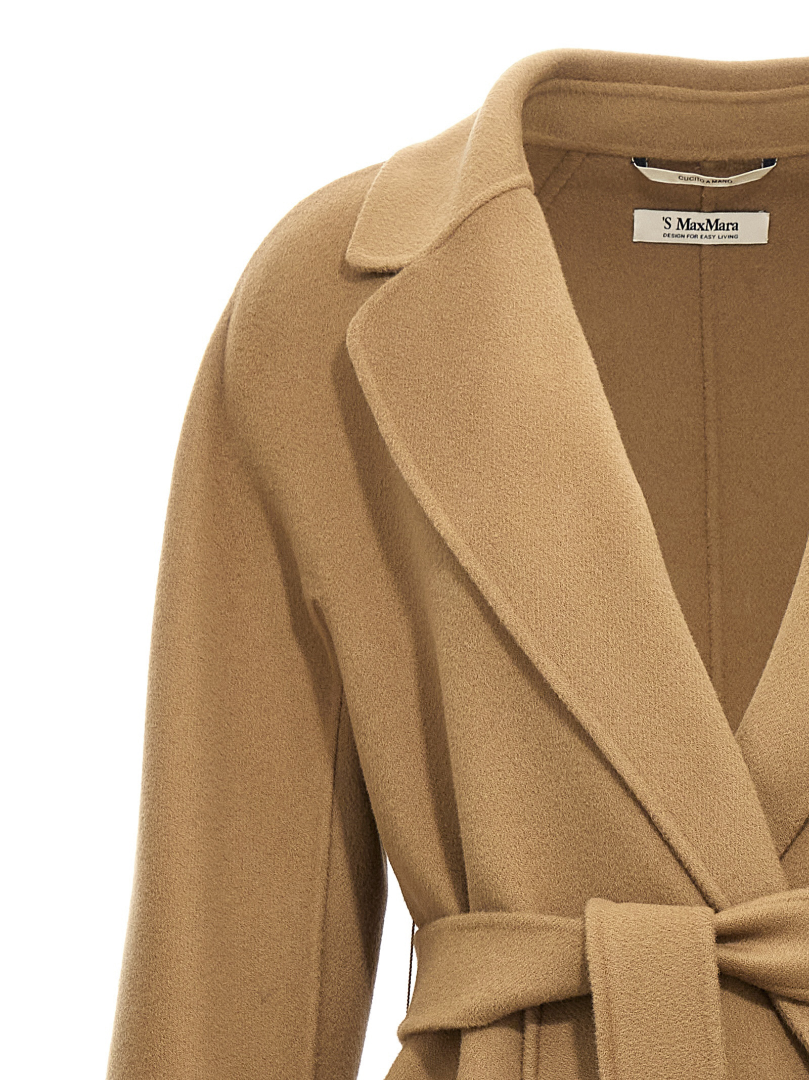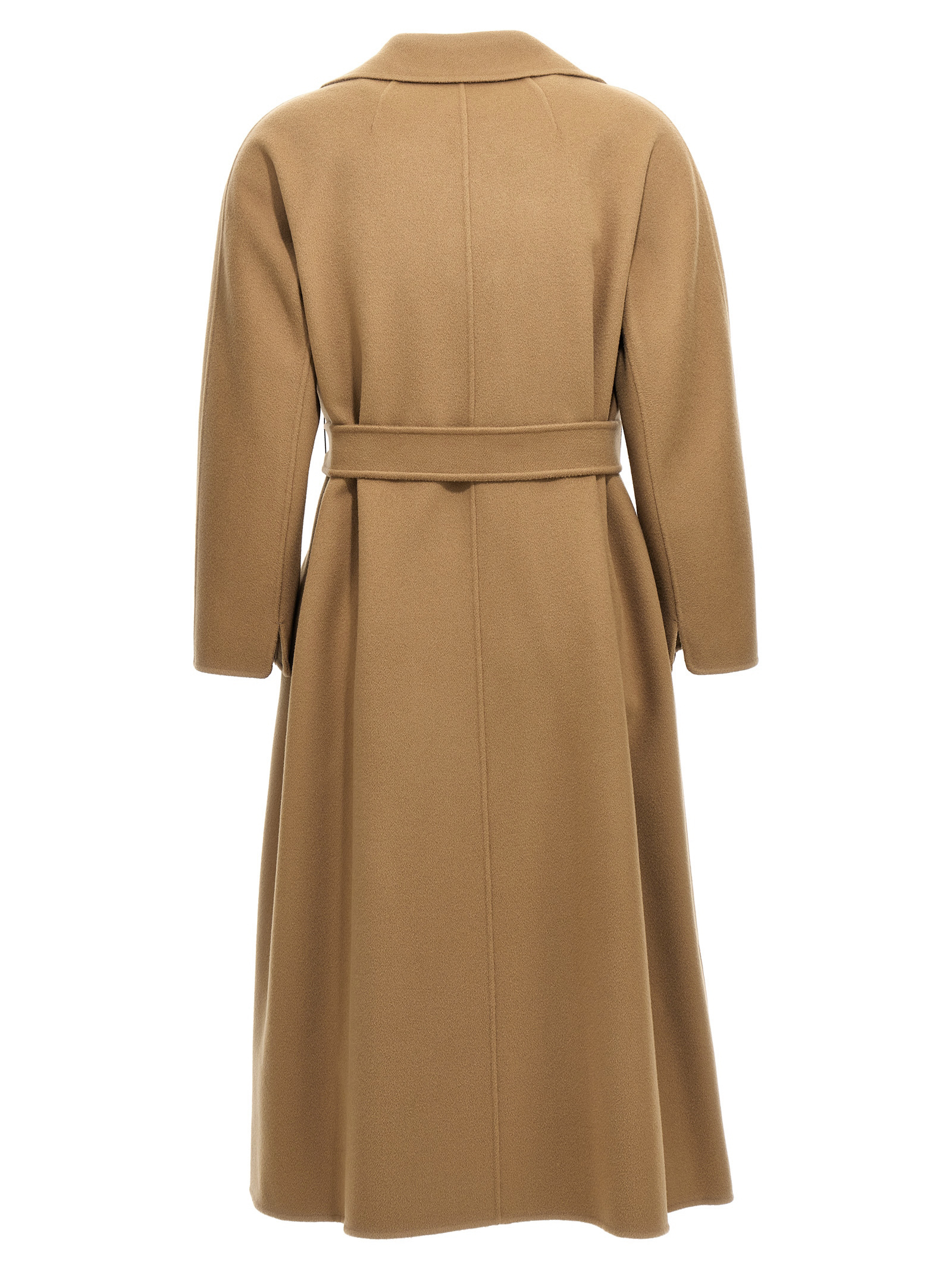 'Esturia' midi coat in a double drap of pure wool hand-stitched, robe style, pockets, long kimono sleeves, unlined, removable belt.