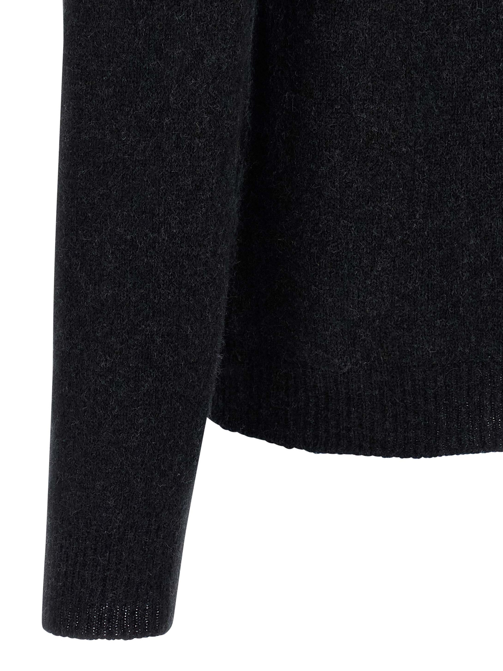 Virgin wool and camel hooded sweater with long cuffed sleeves.