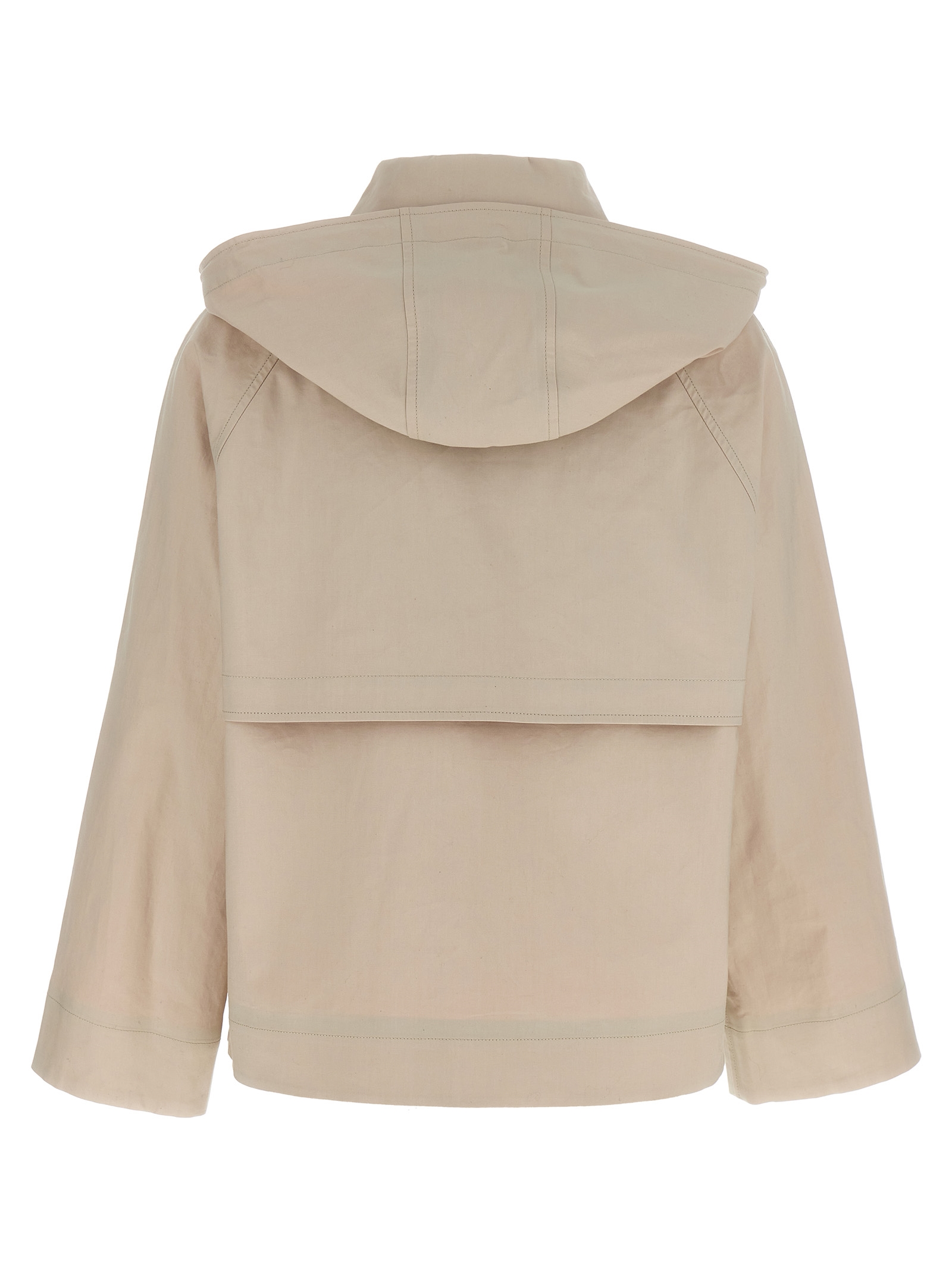 'Honolulu' cotton jacket with removable hood, snap button closure, unlined, long sleeves, pockets.