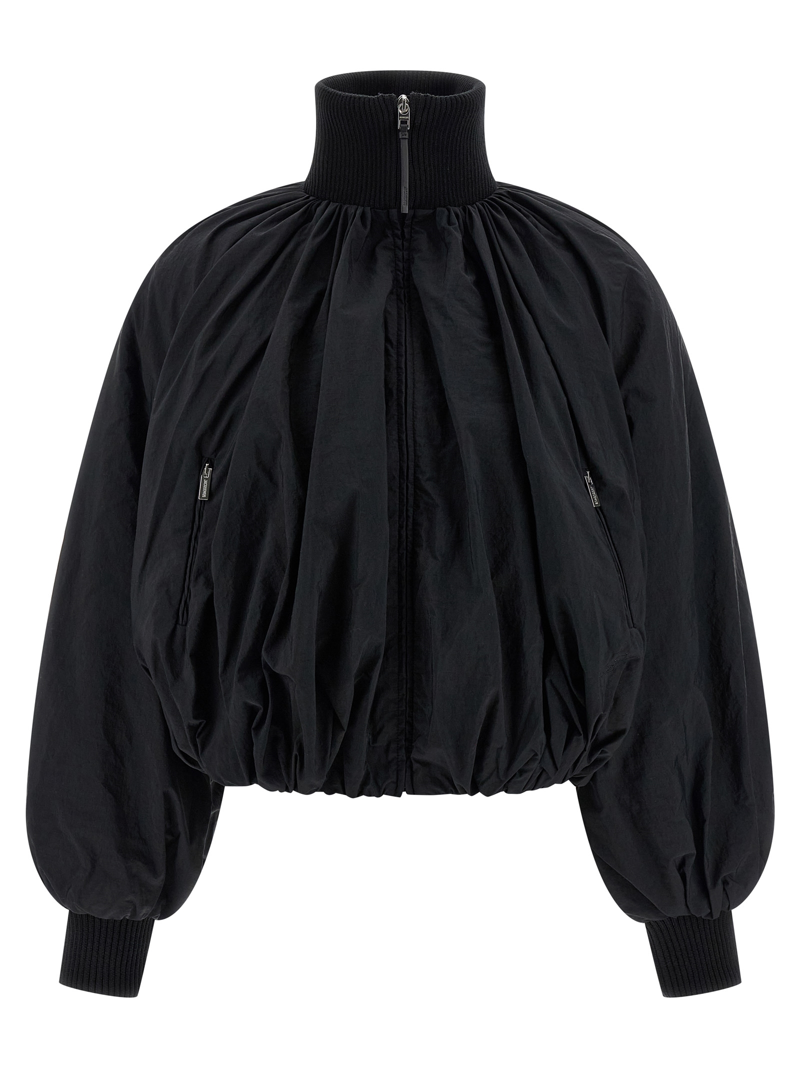 Lightweight, matte nylon 'Le Bomber Pallone' bomber jacket with front and back draping and stretch ribbed knit details, padded cotton blend lining, high neck, front zip closure, pockets, long wide puff sleeves with cuffs.Характеристики товара