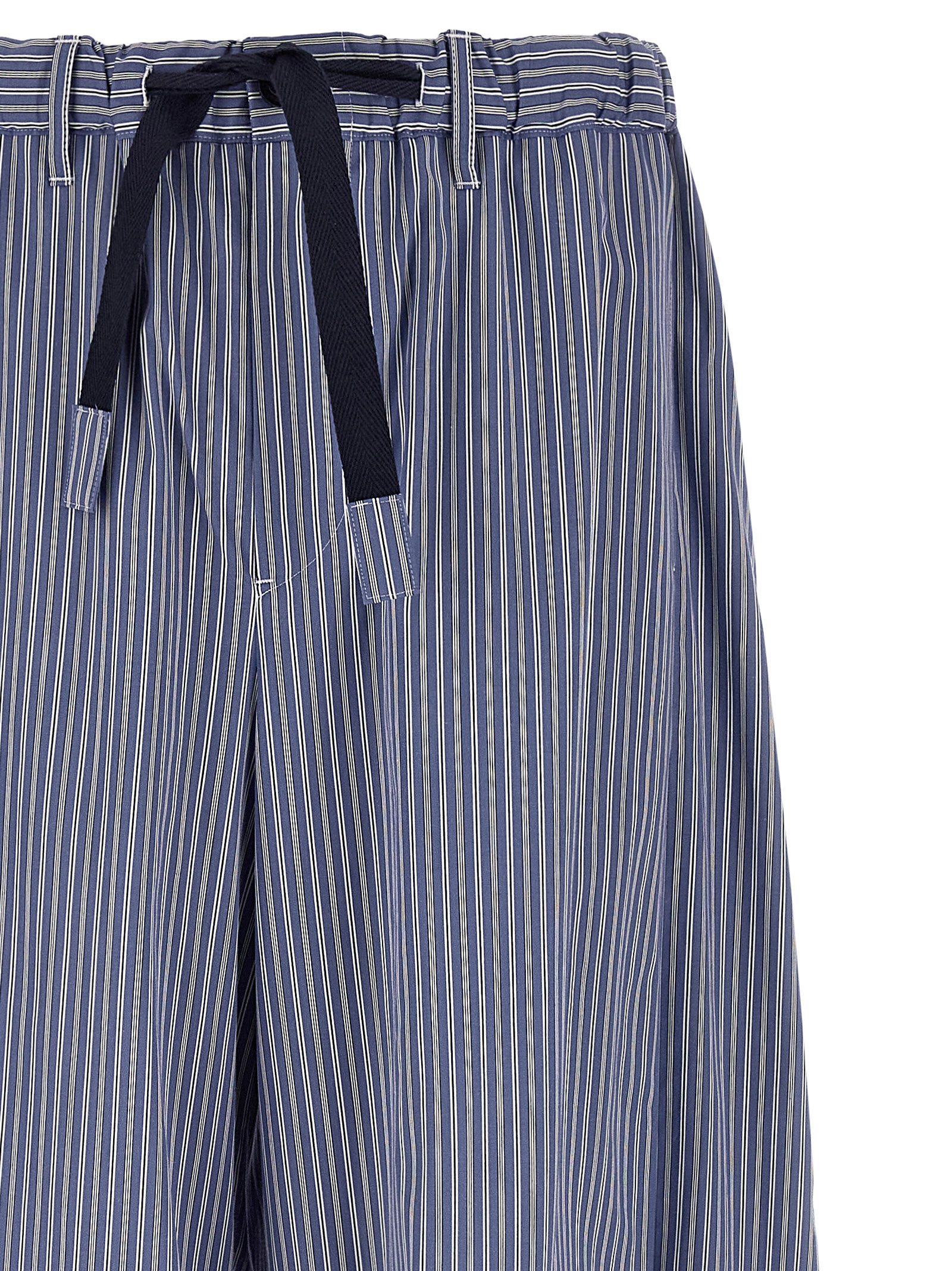 Полосатые брюки из хлопкового поплина, широкие и закругленные штанины внизу, застежка на молнию и пуговицу спереди, эластичный пояс на шнурке, карманы, шнурок внизу штанин.Характеристики товара