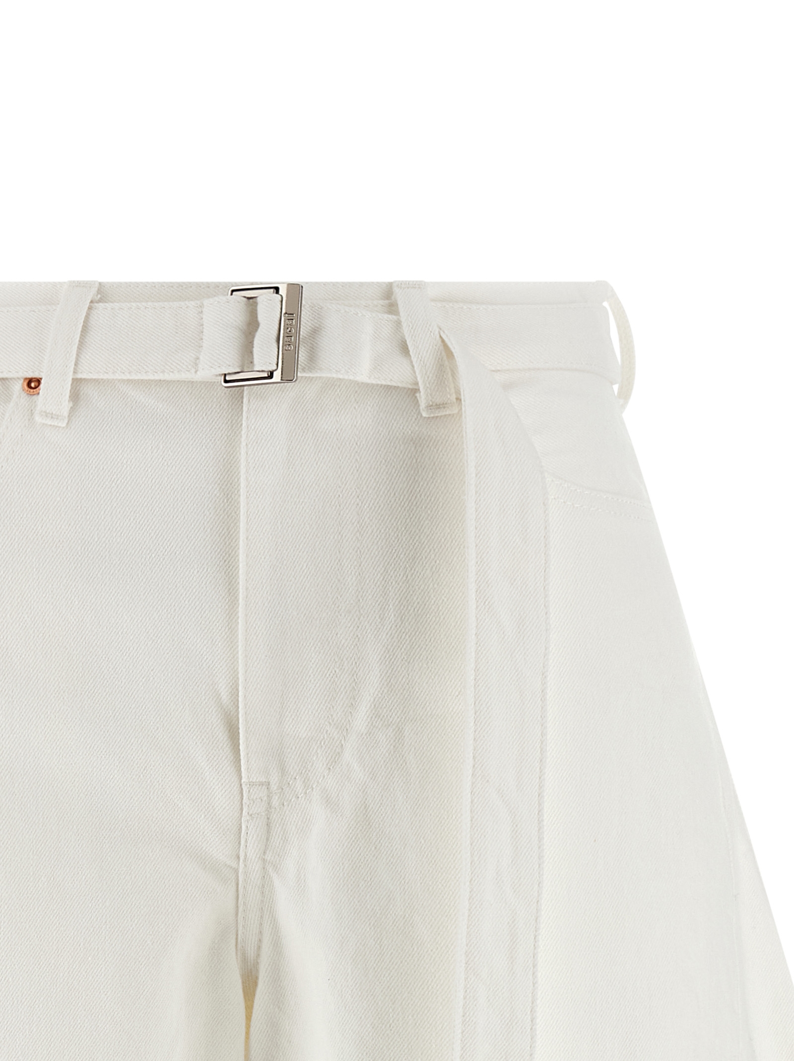 Бермудские шорты из окрашенного в готовом виде хлопкового денима с широкими закругленными штанинами, застежкой на молнию и пуговицу спереди, пятью карманами и съемным поясом.