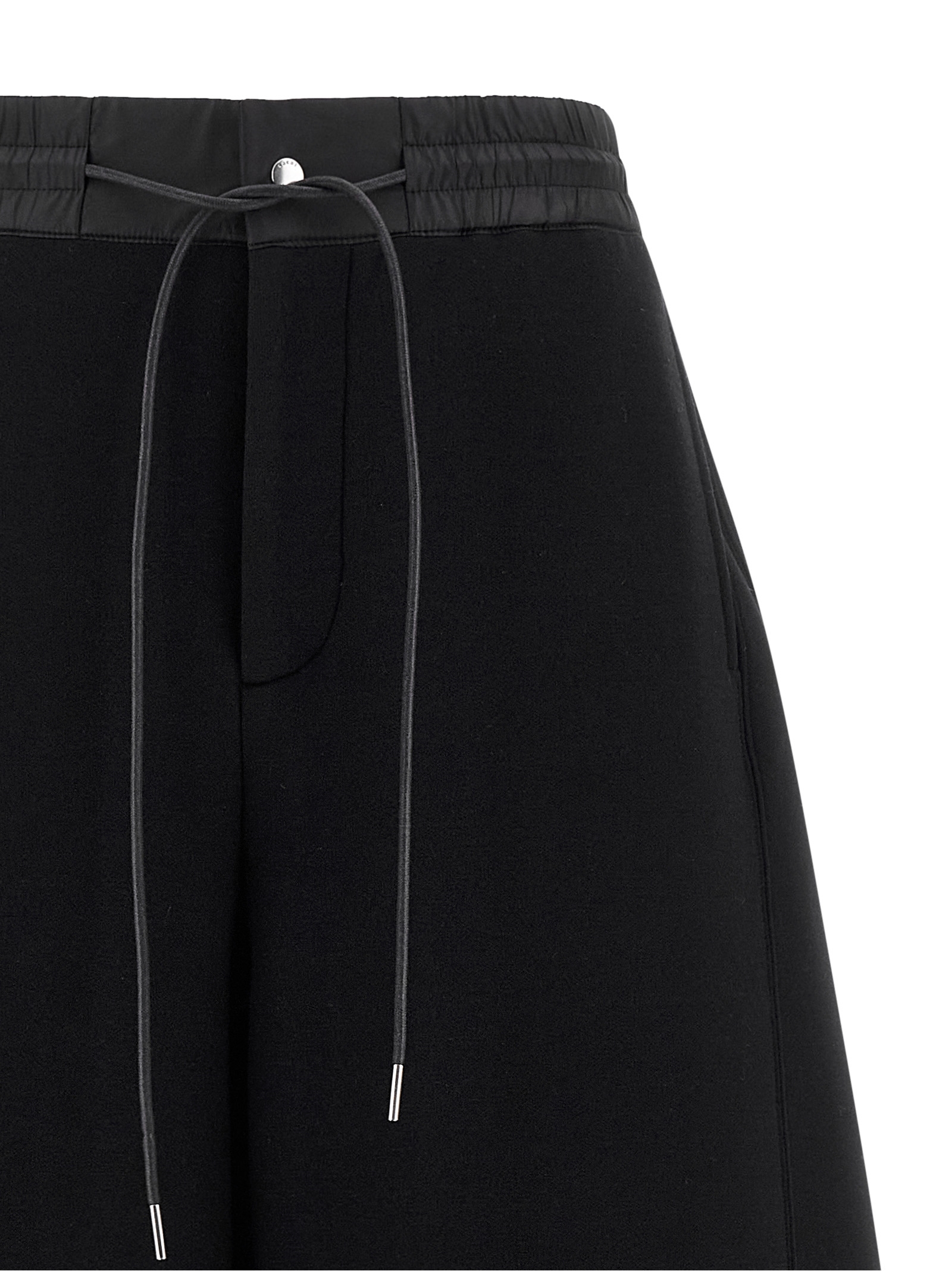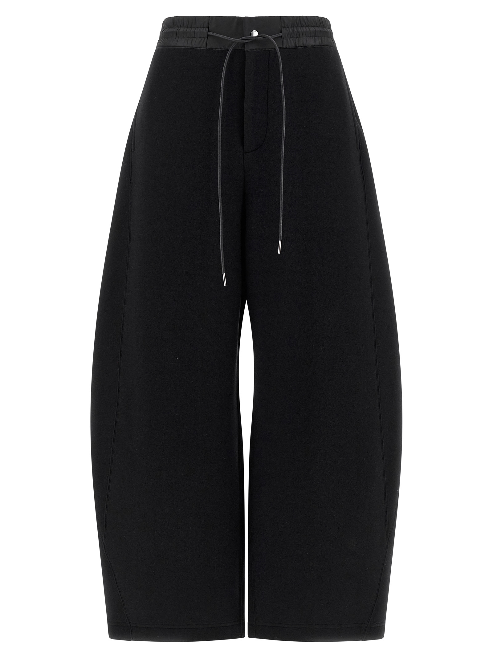 Брюки из смесовой хлопковой ткани Sponge, очень широкие, слегка закругленные штанины, эластичная нейлоновая вставка со шнурком на поясе, застежка на молнию и кнопки, карманы.