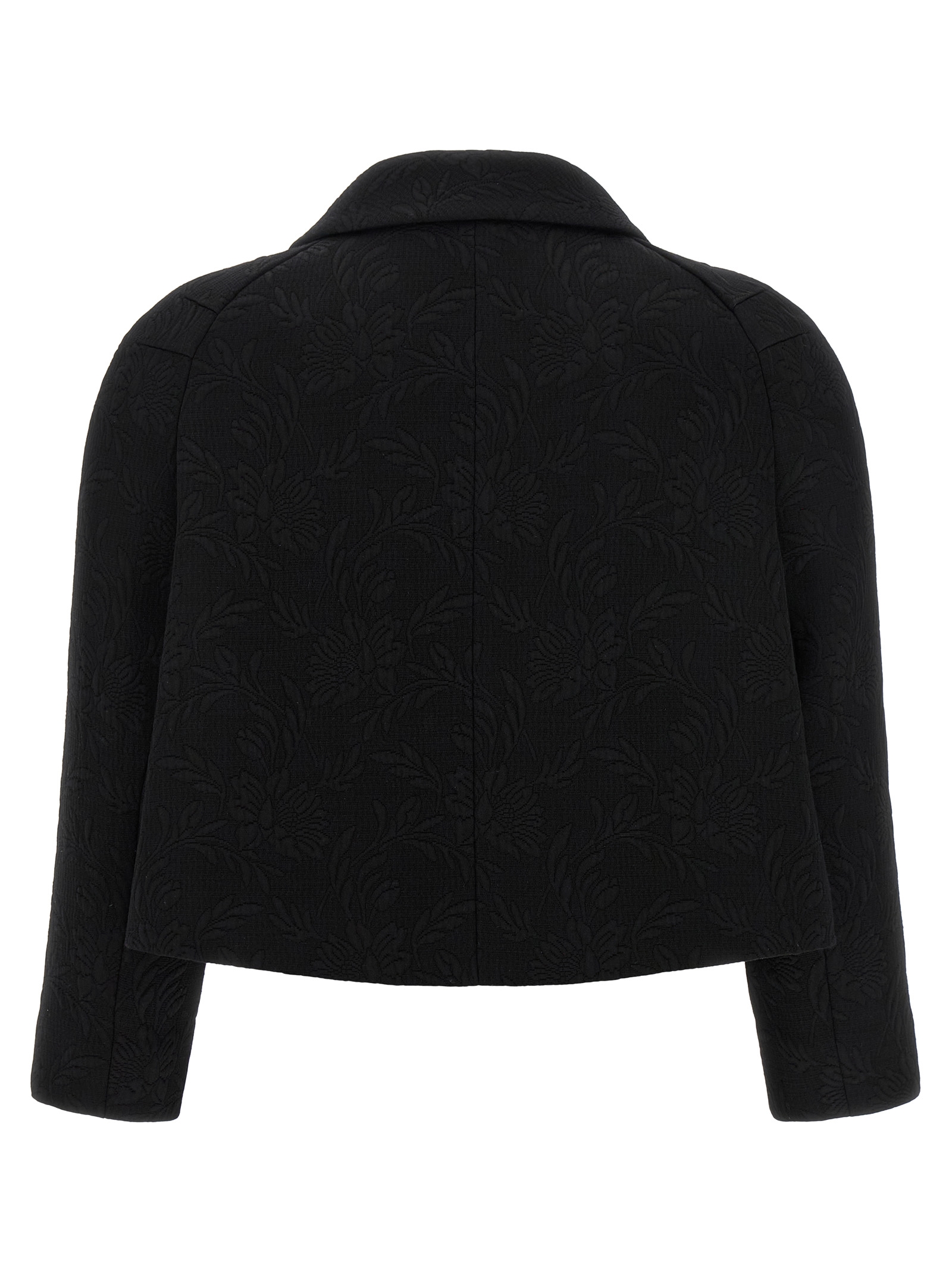 'Vipa' blazer in viscose and cotton blend with tone-on-tone floral stitching, double-breasted bolero style with maxi jewel button closure at the front, shirt collar, long sleeves, lining.