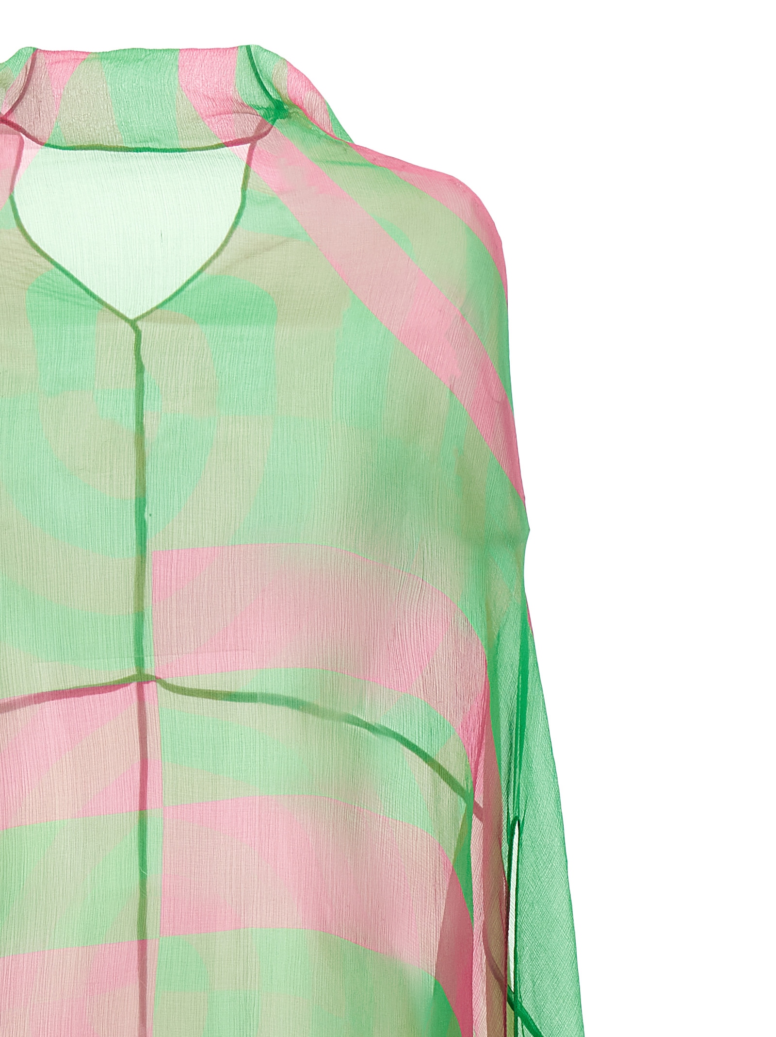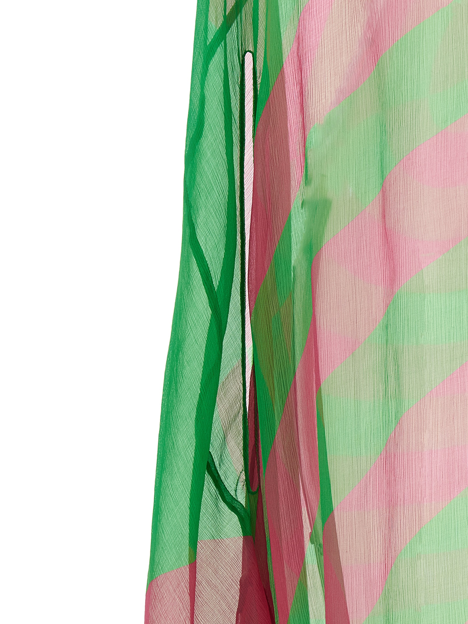 'Ducy' midi dress in semi-transparent silk with crunchy patterned hand, neckline with front draping, sleeveless with dropped shoulder, asymmetrical hem with the possibility of adjusting the side flaps.