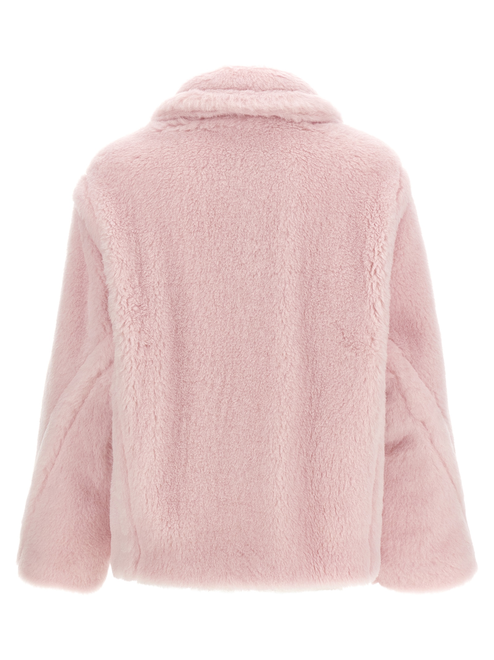 'MxmFuggito' short coat in alpaca and wool Teddy fabric on a silk base with front button closure, shirt collar, pockets, long sleeves, Monogram jacquard fabric lining.