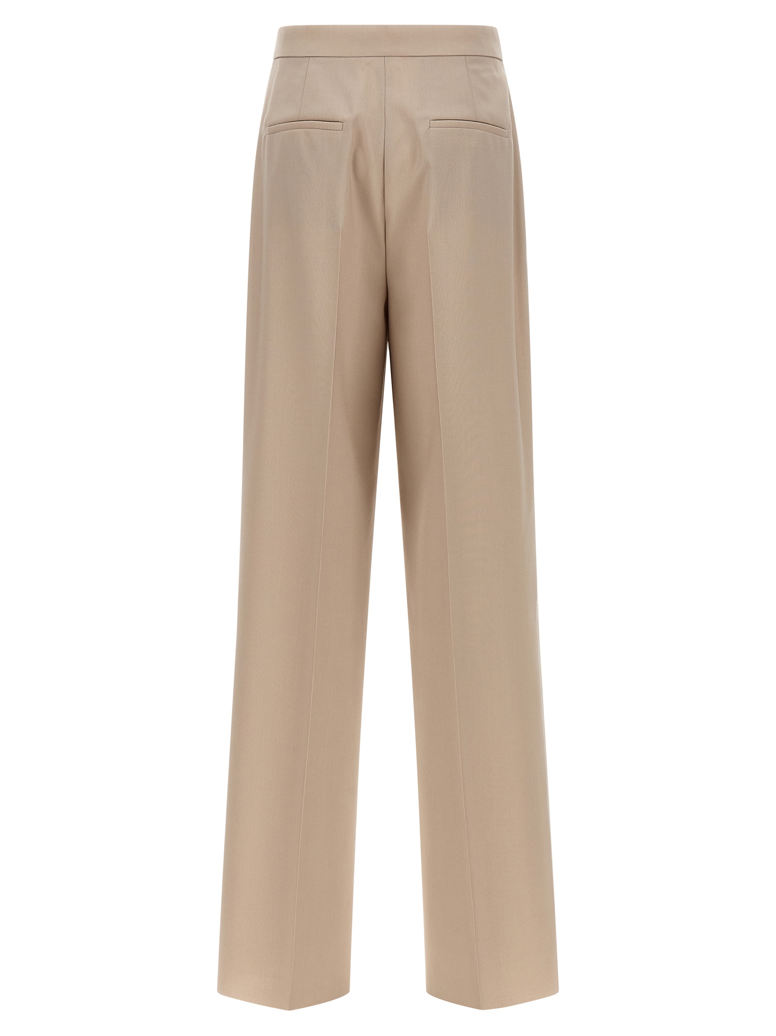 'MxmGirone' wool, mohair and silk canvas trousers, high waist, wide leg, stretched pleat, pockets, zip hook and front button closure, back pin tucks.