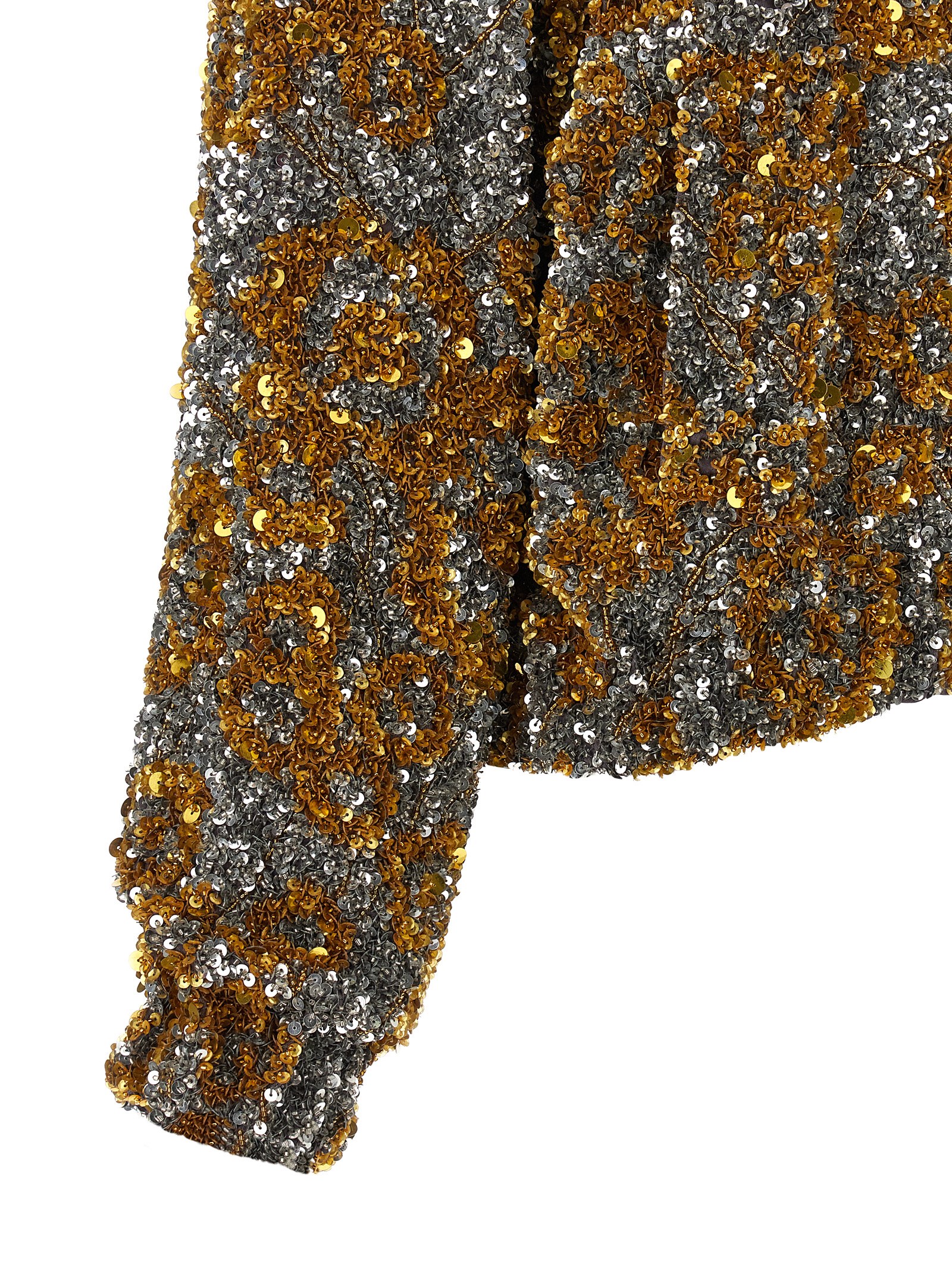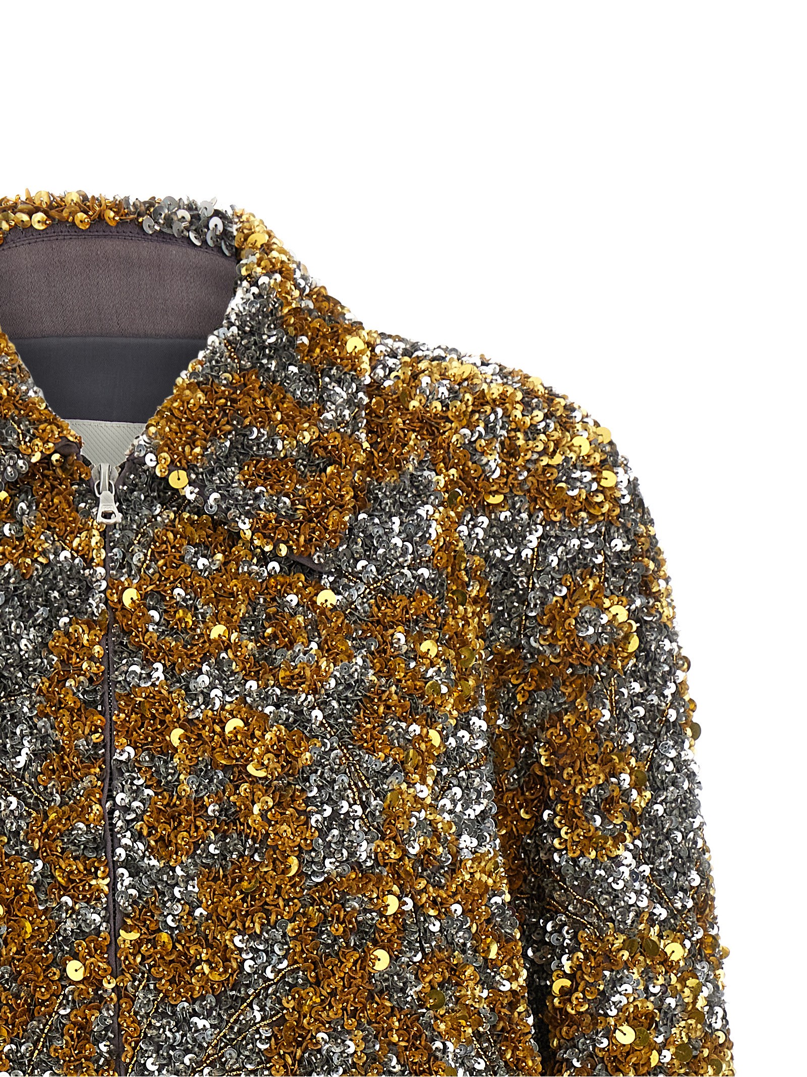 Вискозная куртка Vinnia, расшитая пайетками и бусинами по всей поверхности, блестящая вискозная подкладка, воротник рубашечного типа, застежка-молния спереди, карманы, длинные рукава с эластичными манжетами, эластичный низ.