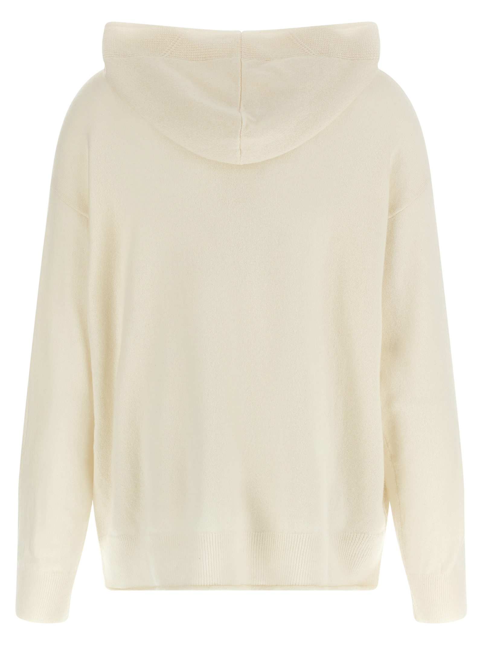 'MxpCrusca' cardigan in pure cashmere shaved yarn, hood, front zip closure, pockets, long sleeves with cuffs and dropped shoulders.