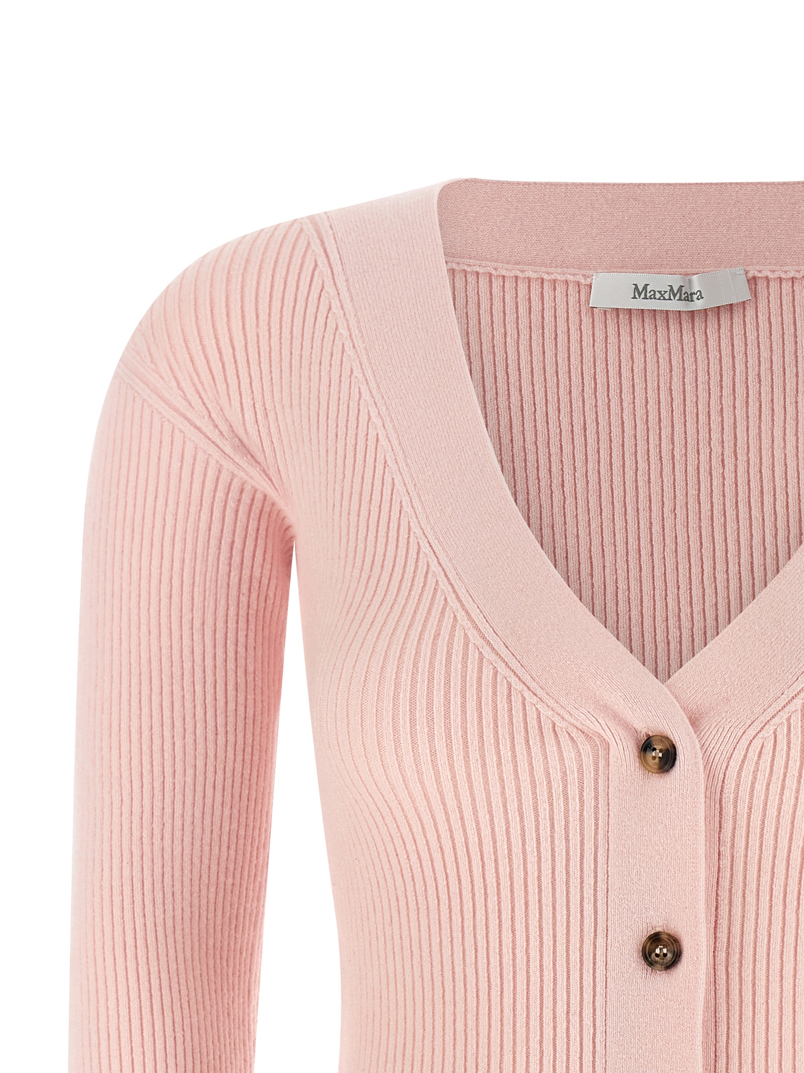 'Mxmgioiosa' ribbed wool and cashmere yarn sweater, wide V-neck, trompe l'oeil button closure on the front, long sleeves with dropped shoulders.