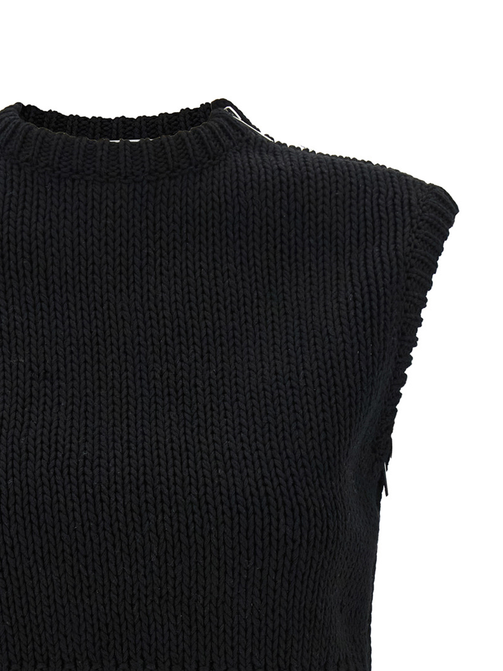 'MxsVolto' sweater in shaved cotton yarn coupled with light jersey mesh, crop model, zip on shoulder and left side, crew neck, sleeveless.