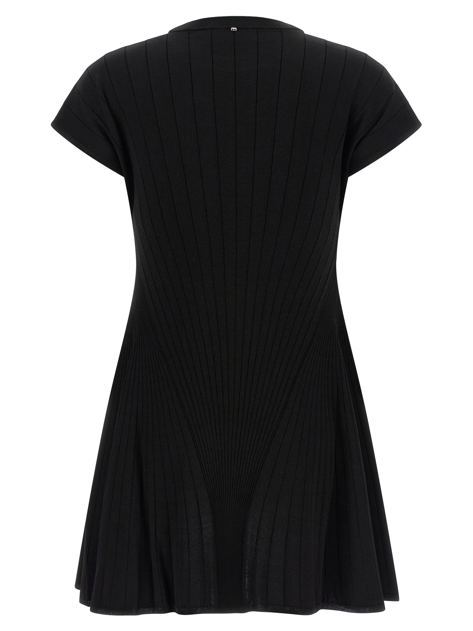 'SpxEre' radial effect stretch viscose blend knit dress with hourglass silhouette, crew neck, short sleeves with dropped shoulders.Характеристики товара
