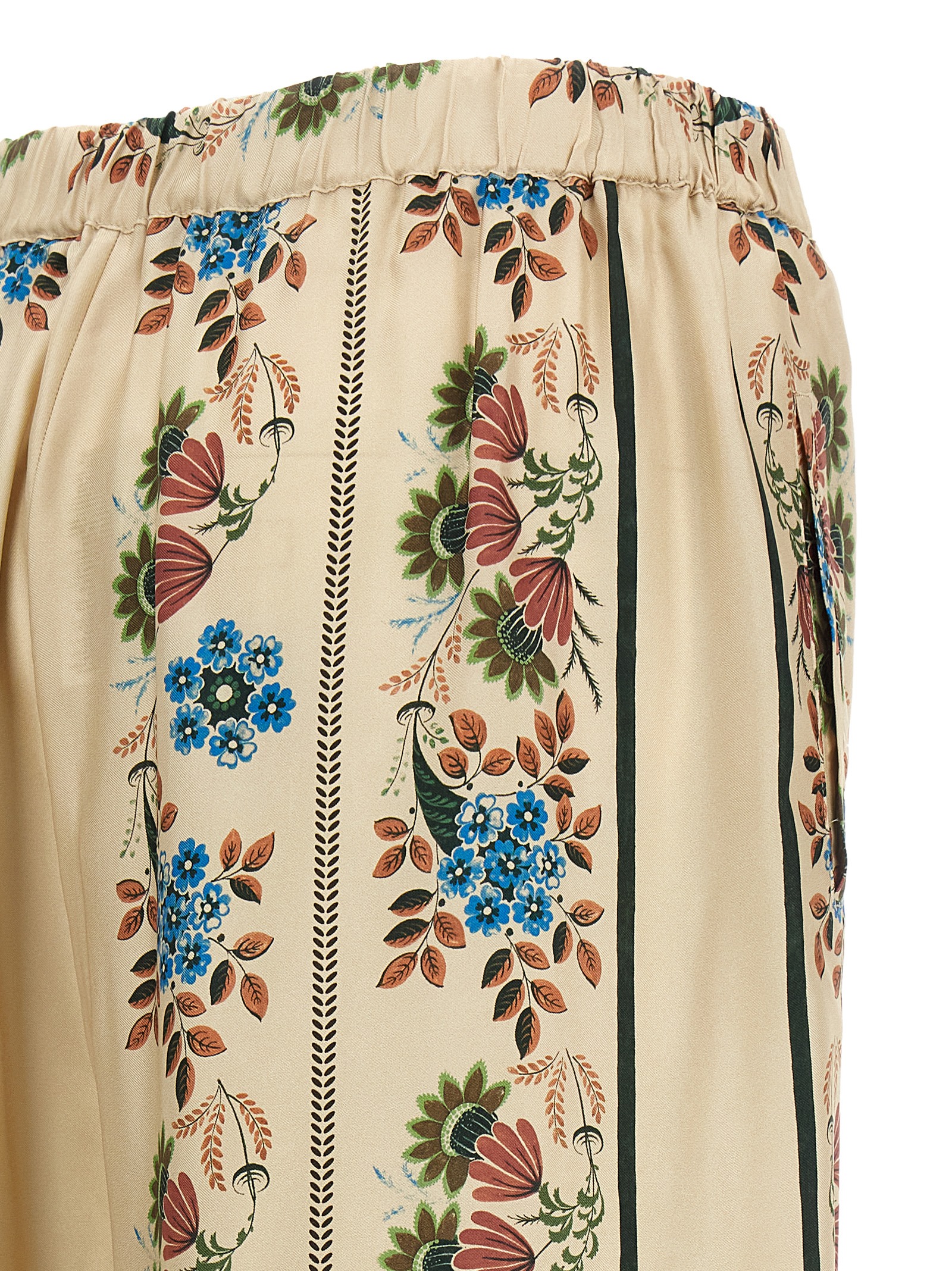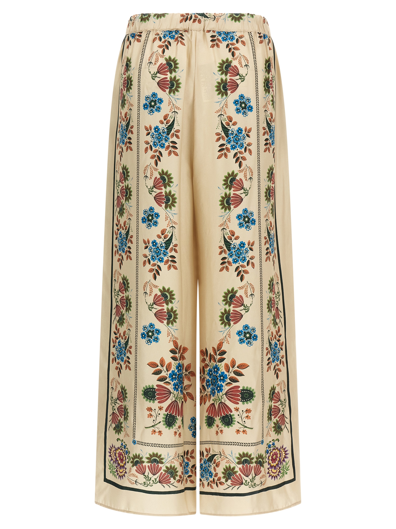 'WkdSnack' pants in pure patterned silk twill, crop model, wide and straight leg, elastic waistband, pockets.