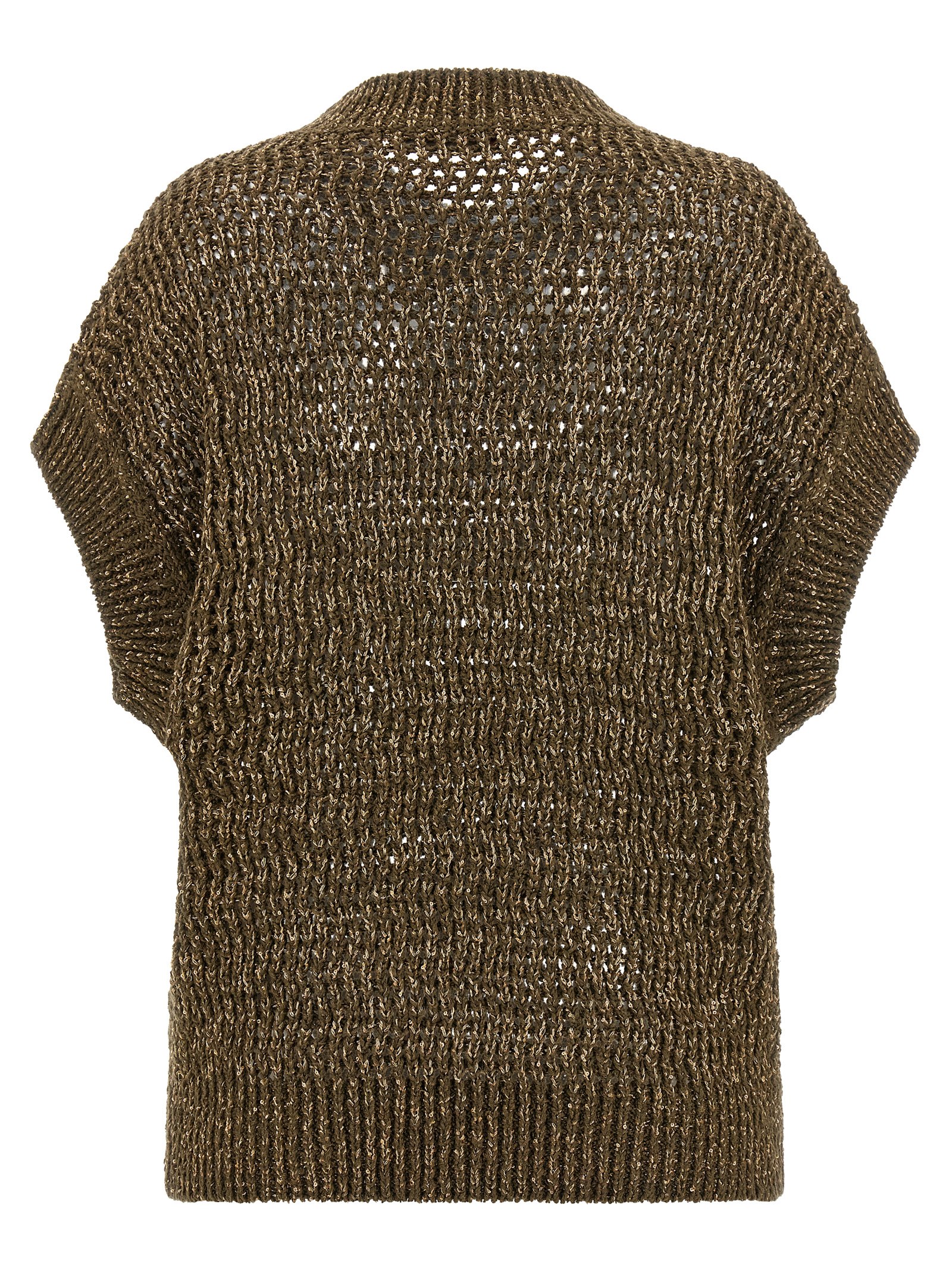 Mesh stitch 'MstArmonia' cotton tape sweater with all-over sequin appliqué, crew neck, dropped shoulder.