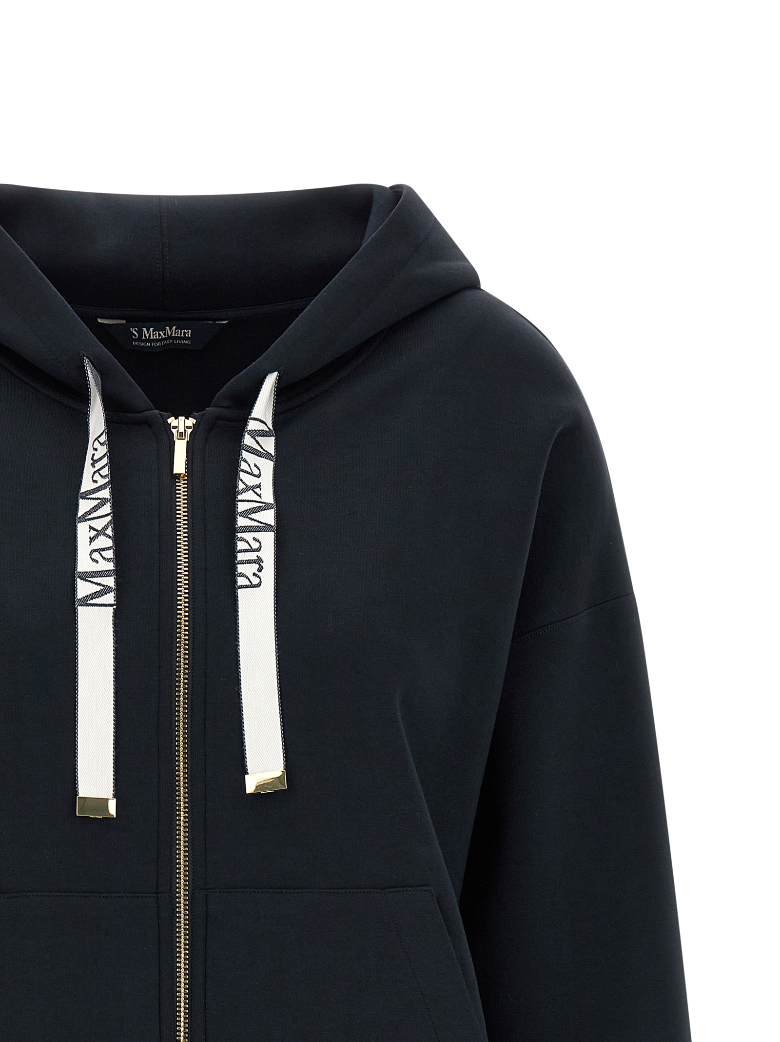Tech cotton jersey 'SmmJour' sweatshirt, adjustable hood with jacquard logo ribbons, front zip closure, pockets, long sleeves with cuffs and dropped shoulders, and headband.