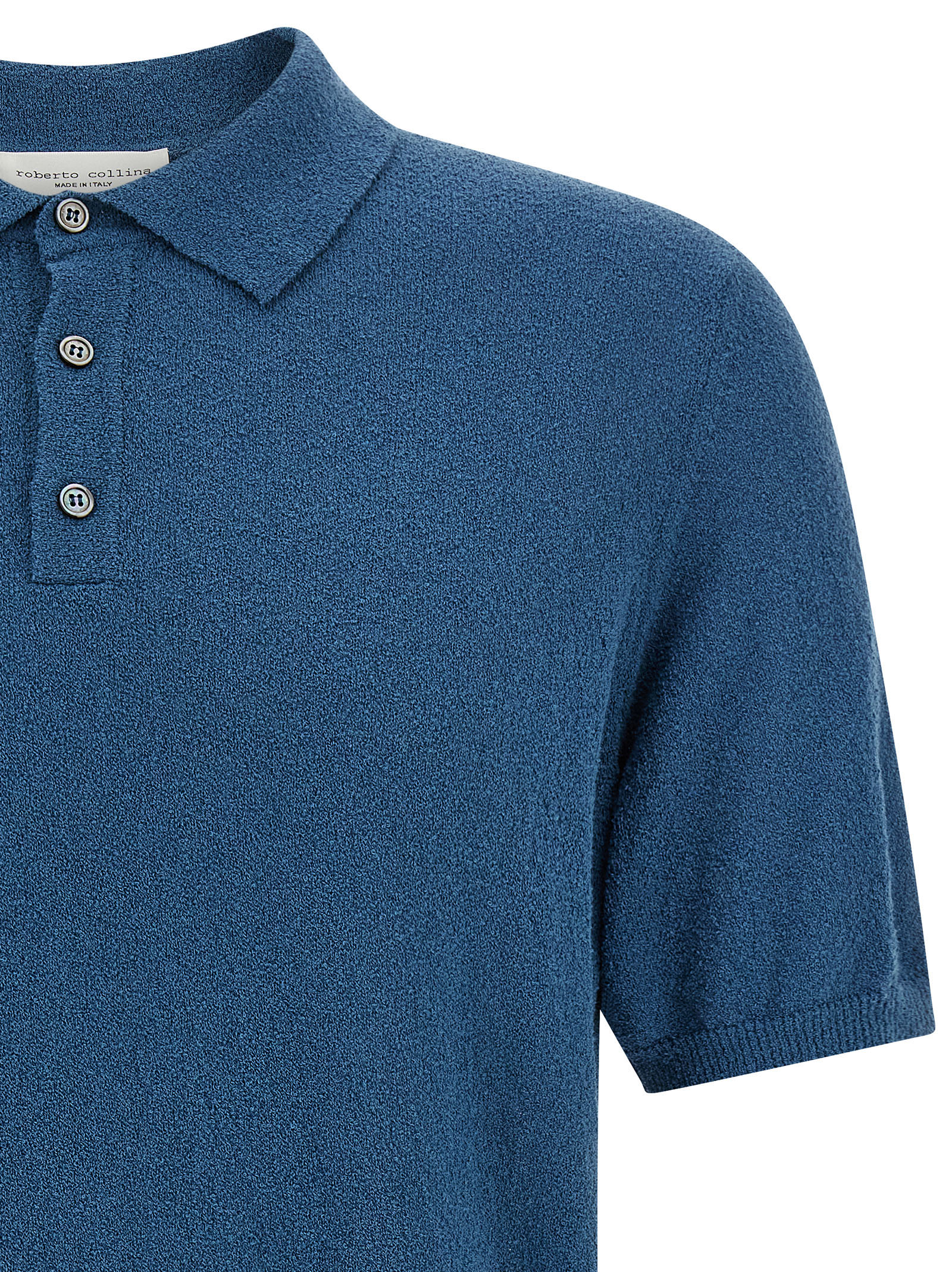 Polo shirt in cotton blend with spongy effect, collar and buttons, short sleeves with cuffs, and band on the hem.Характеристики товара
