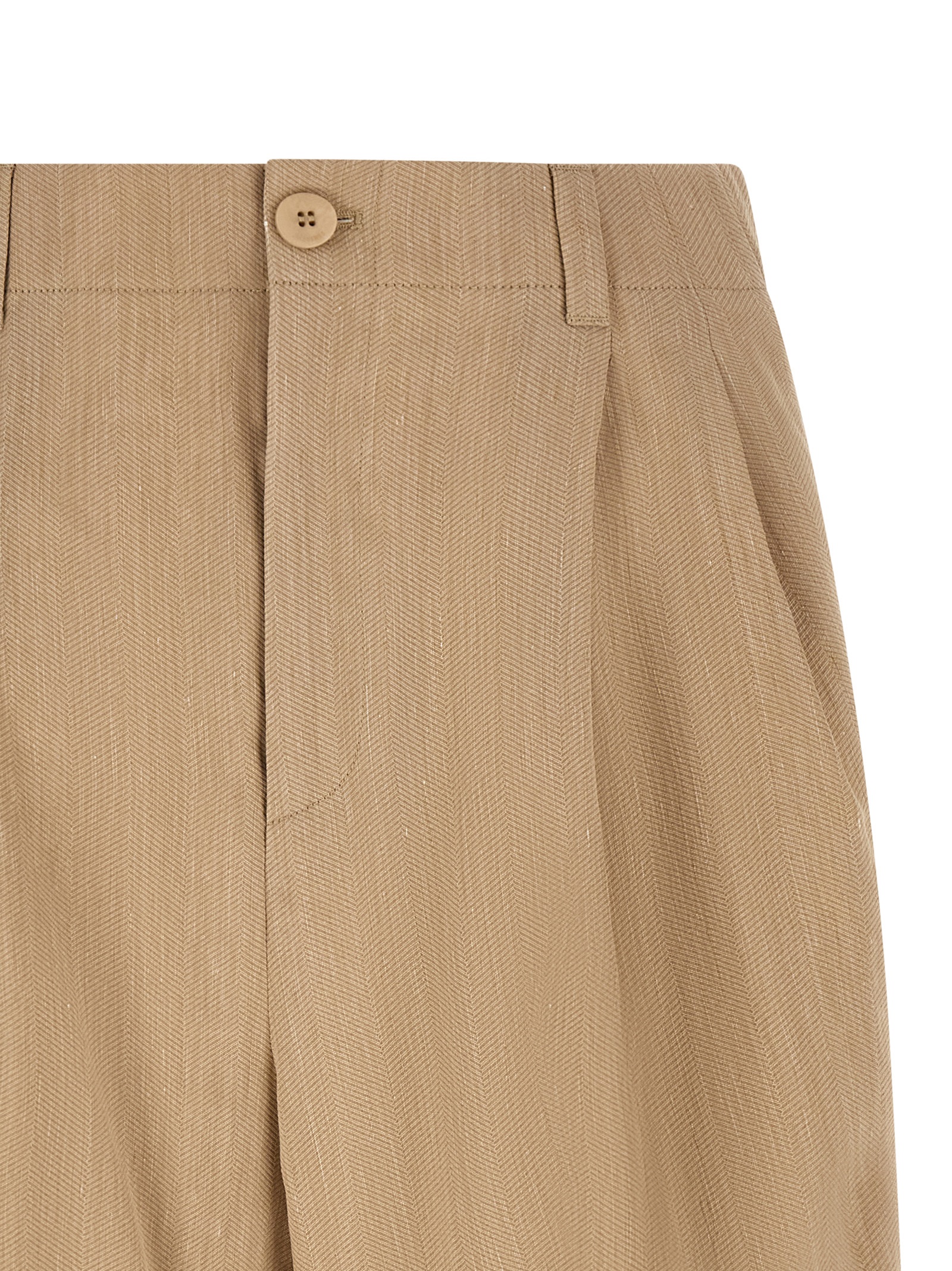 'Le Short Pastro' bermuda shorts in textured linen with chevron pattern, pince, stretched pleat, wide leg, mid waist, tone-on-tone logo embroidery and front zip and button closure, front American pockets, back welt pockets, turn-up hem.Характеристики товара