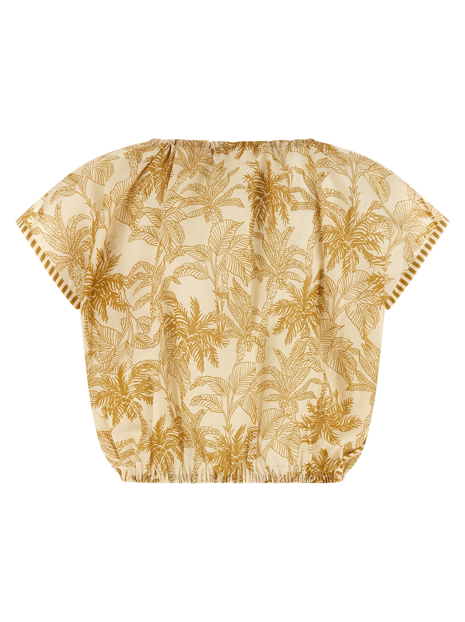 'Crocodile' crop top in 'Imprimé Voyage Panama' patterned cotton voile with round neckline with drawstring, short sleeves, elastic at the hem.