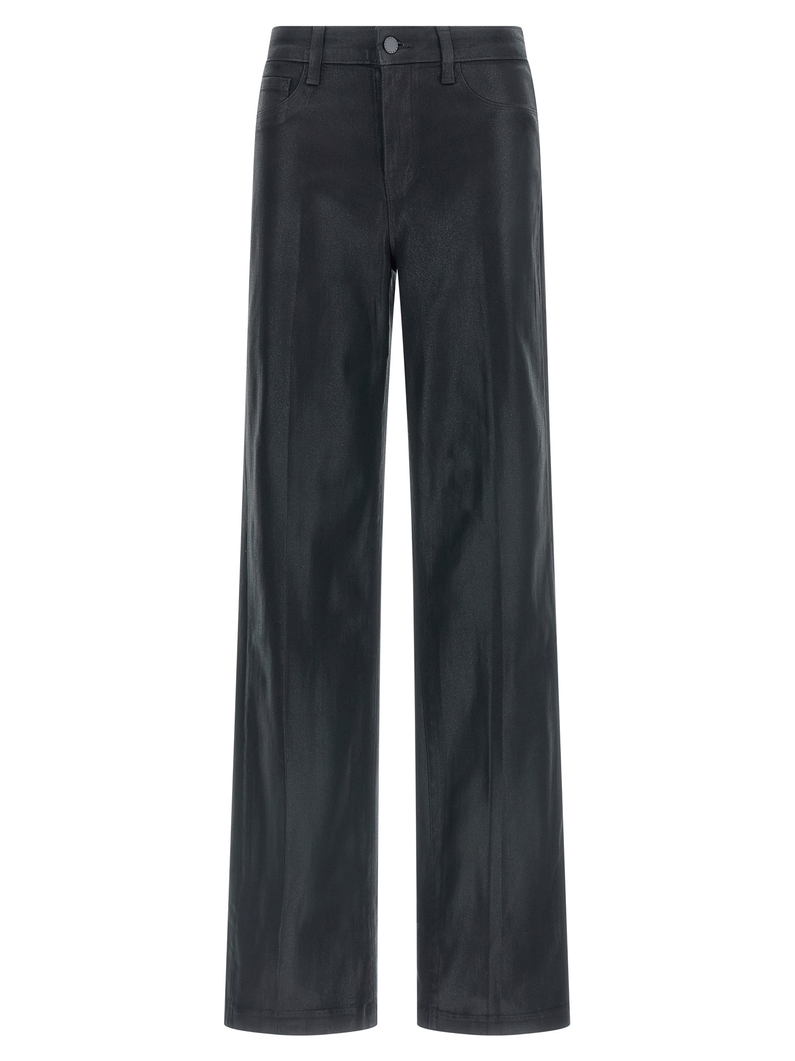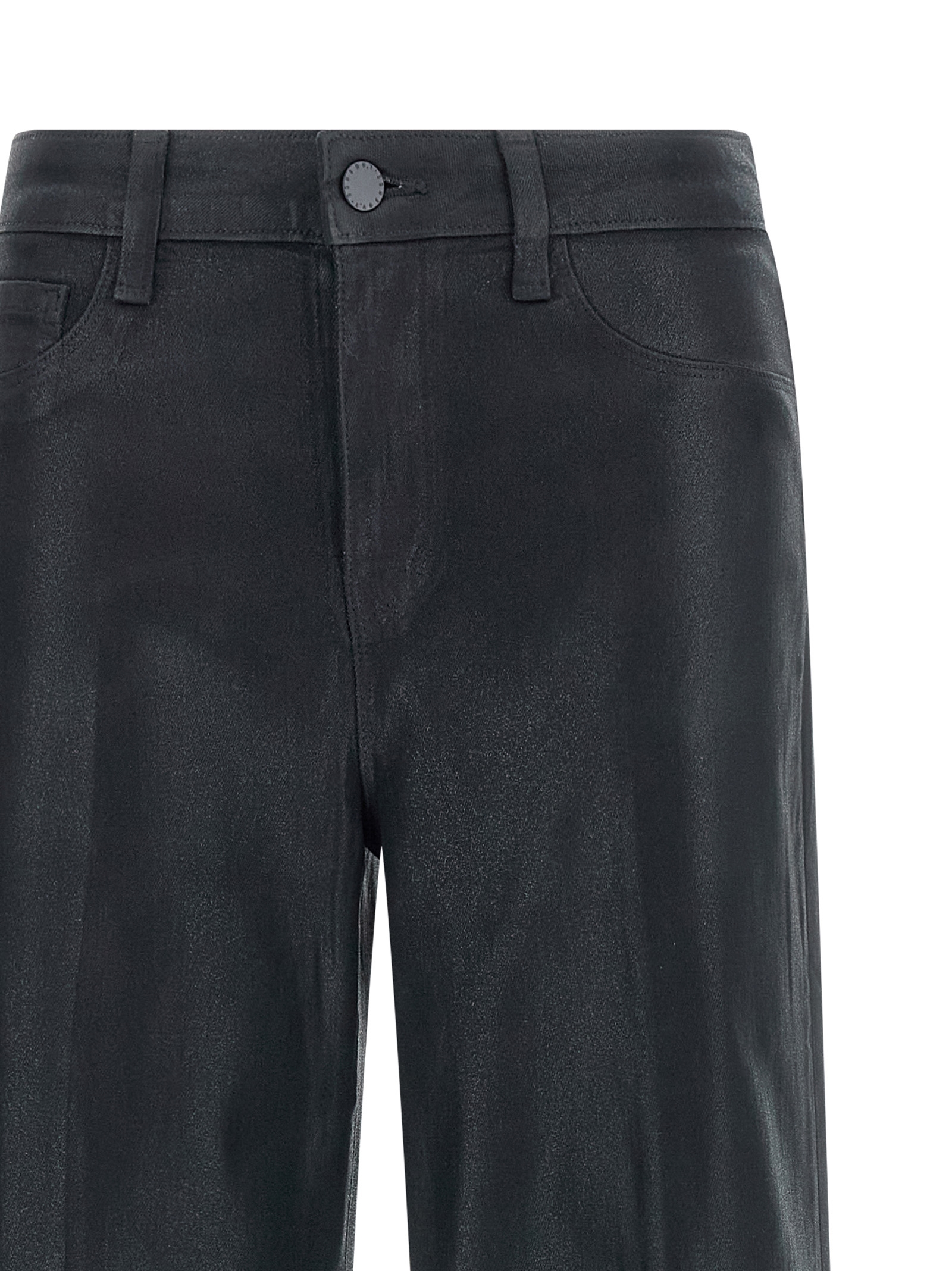 'Clayton' super stretch coated denim jeans, high waist, straight wide leg, stretched pleat, front zip and button closure, front trompe l'oeil pockets, functional back pockets.