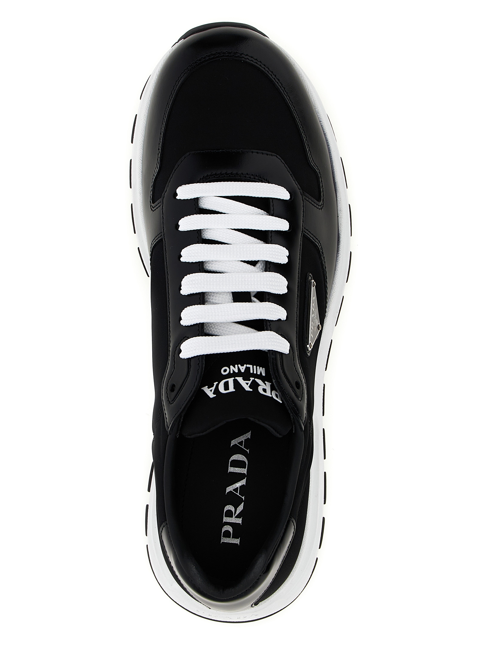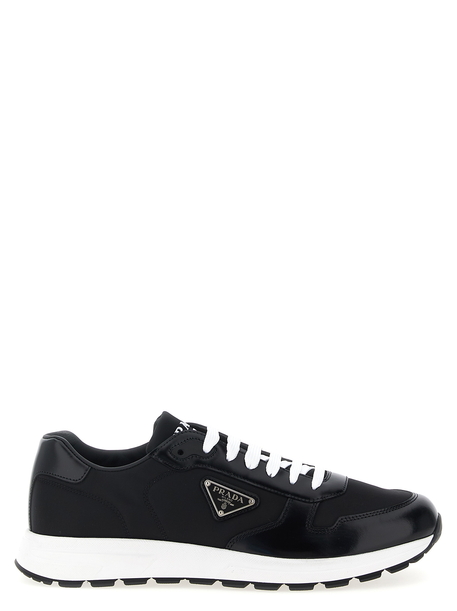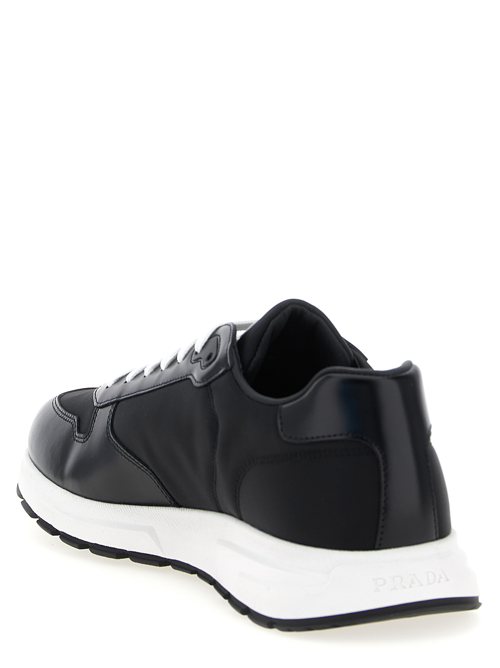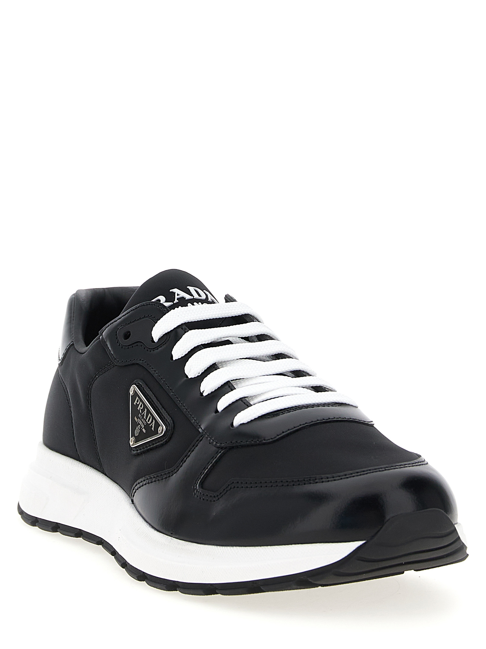 'Prax 2.0' sneakers in Re-Nylon and leather, triangle logo in enameled metal on the side, lace-up closure, rubber sole. SUSTAINABLE: This product is made with Re-Nylon, a regenerated yarn made from recycled and purified plastic collected in oceans, fishery nets and textile fibers.lected in oceans, fishery nets and textile fibers.