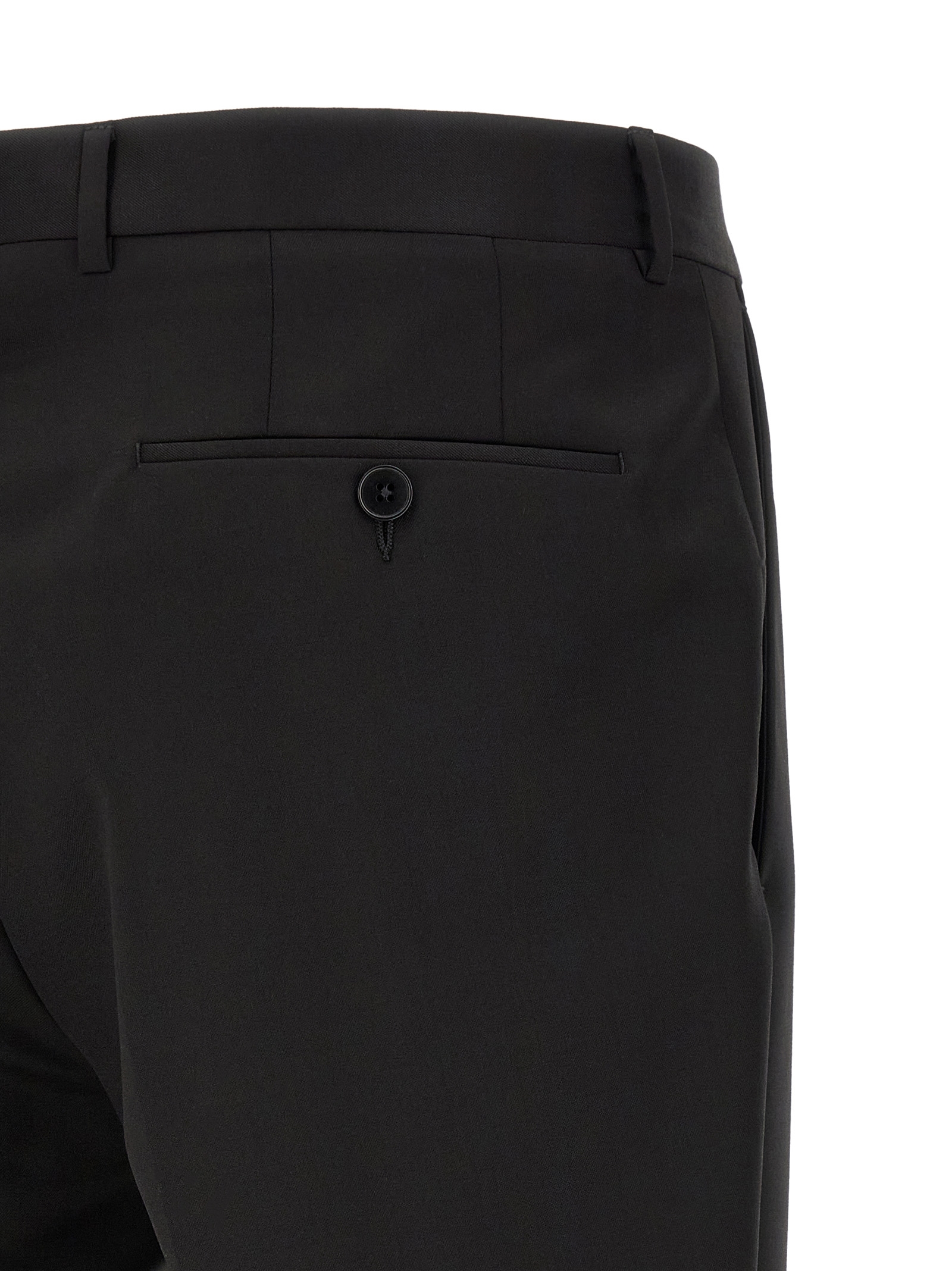 Wool and mohair blend dress consisting of single-breasted blazer with two front button closure, mirror lapels, breast pocket, flap pockets, viscose lining, three inner pockets, structured shoulder strap, cuffs with opening buttonholes, back slits and trousers with stretched pleat, front 'americane' pockets, back welt pockets, hook and front button zip closure, viscose lining, hem on leg bottom to be finished.