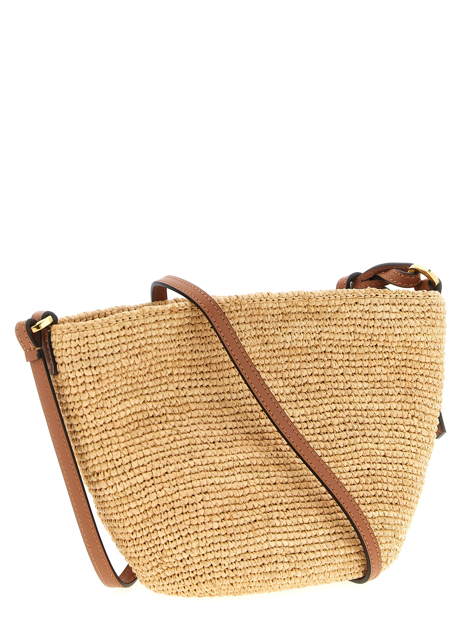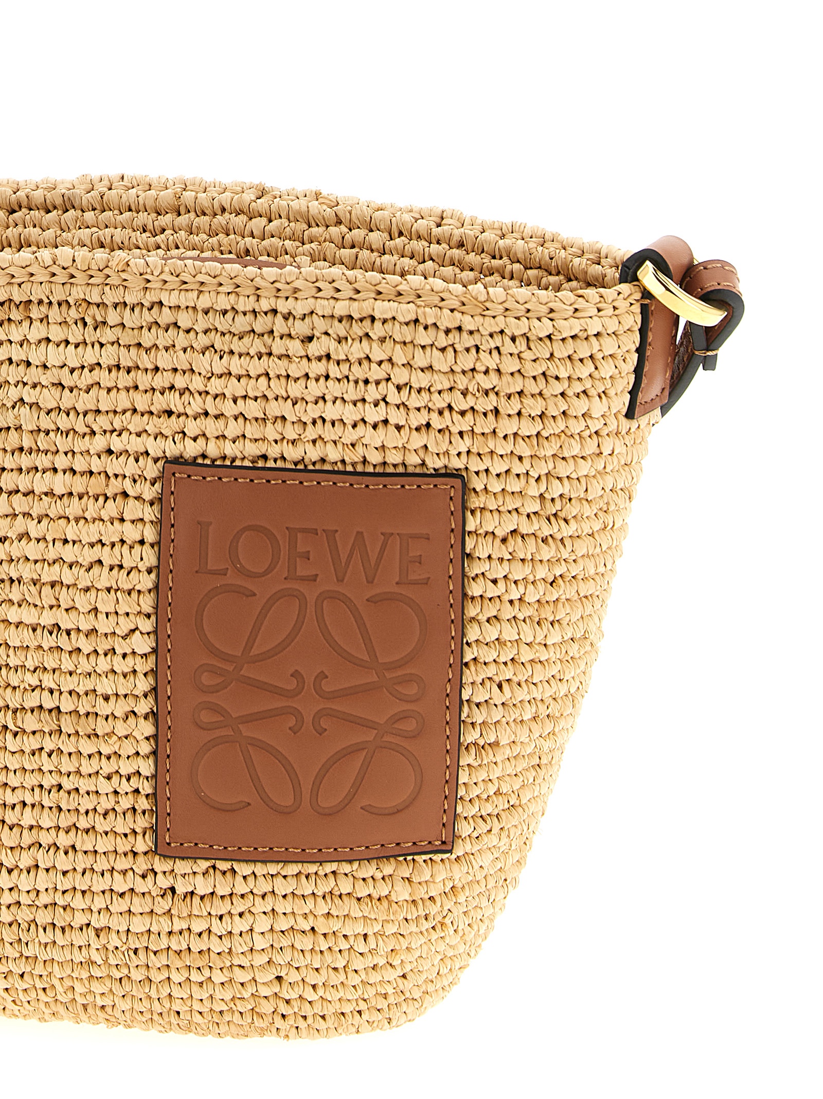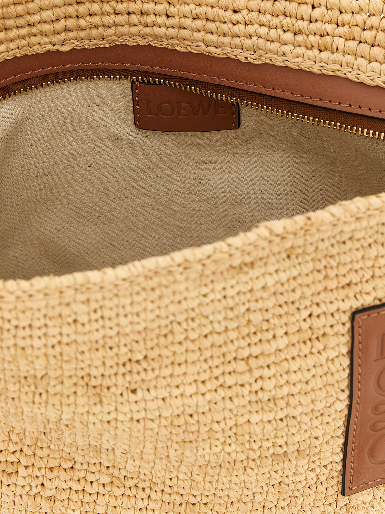 Клатч Loewe из рафии со съемным кожаным плечевым ремнем и кожаной нашивкой с тисненым логотипом.